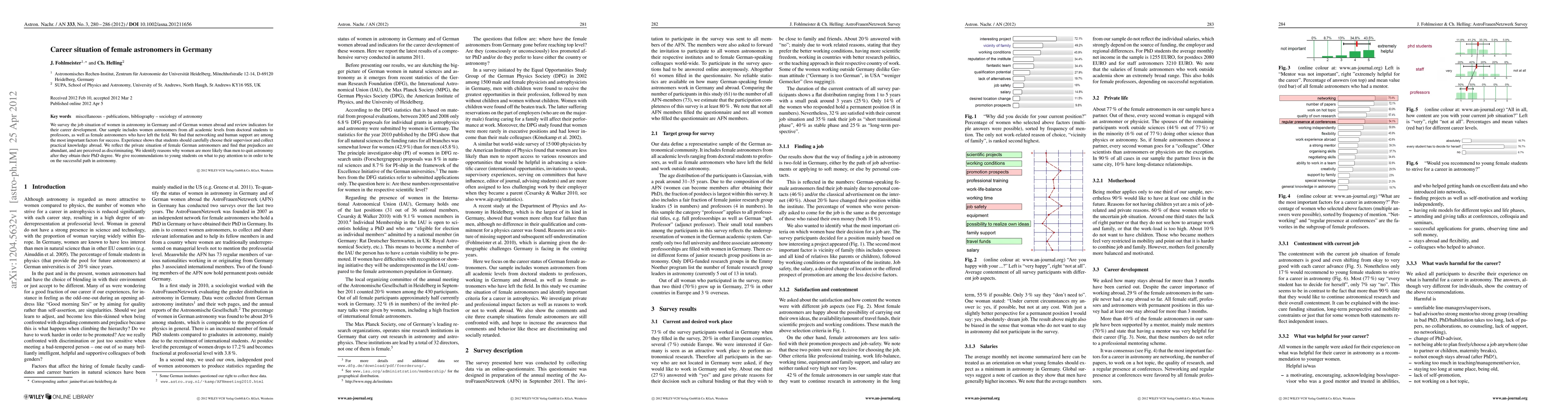 We survey the job situation of women in astronomy in Germany and of German women abroad and review indicators for their career development. Our sample includes women astronomers from all academic levels from doctoral students to professors, as well as female astronomers who have left the field. We find that networking and human support are among the most important factors for success. Experience shows that students should carefully choose their supervisor and collect practical knowledge abroad. We reflect the private situation of female German astronomers and find that prejudices are abundant, and are perceived as discriminating.We identify reasons why women are more likely than men to quit astronomy after they obtain their PhD degree. We give recommendations to young students on what to pay attention to in order to be on the successful path in astronomy.