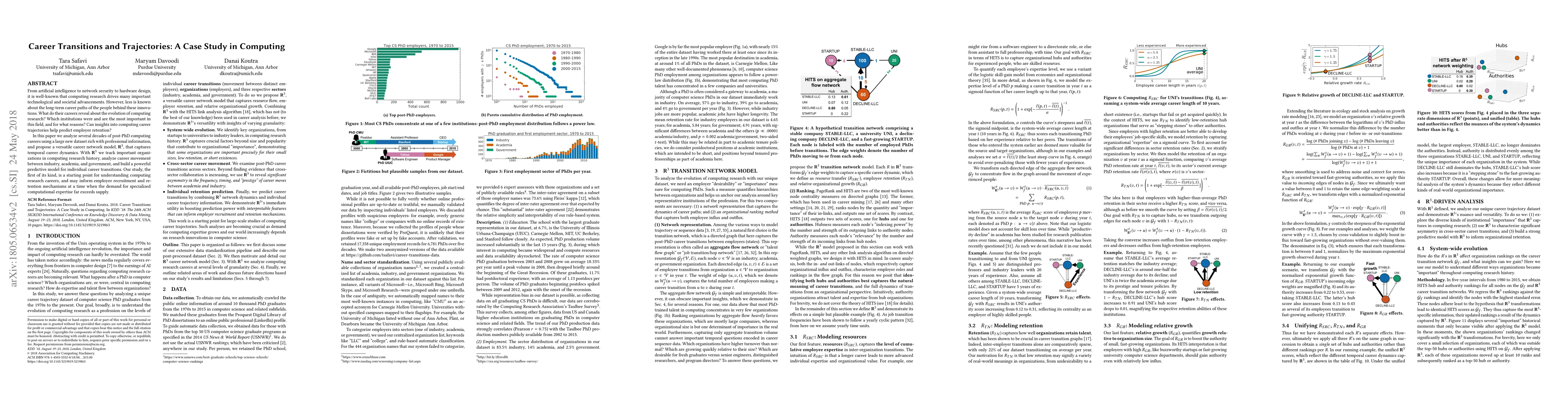 This study analyzes post-PhD computing careers to understand career trajectories and predict employer retention, proposing a versatile model that captures temporal dynamics and tracks important organizations in computing research history.