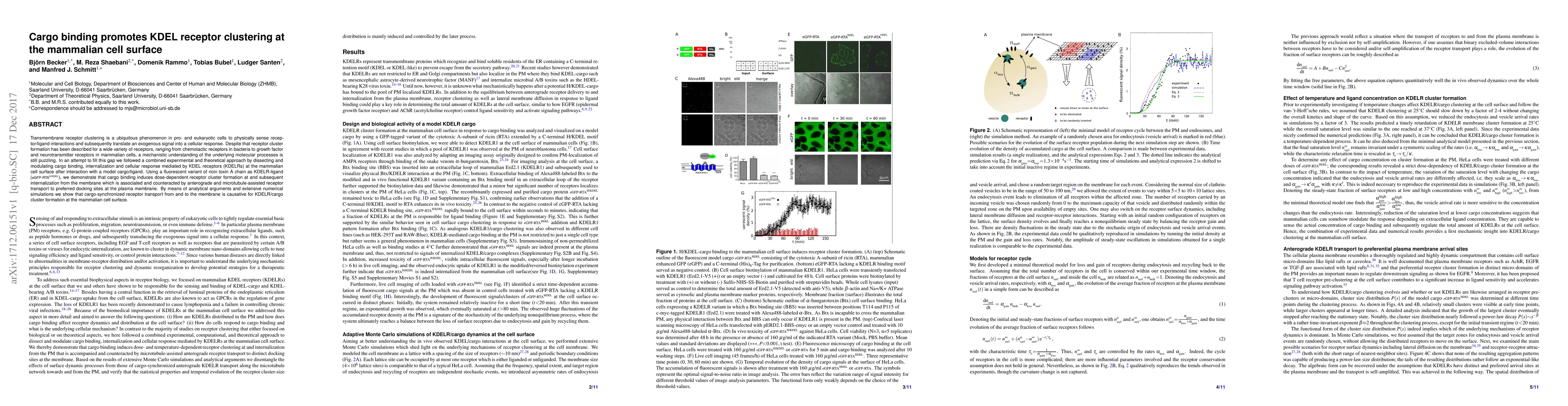 The study combines experimental and theoretical approaches, dissecting and modulating cargo binding, internalization, and cellular response mediated by KDEL receptors (KDELRs) at the mammalian cell surface after interaction with a model cargo/ligand (fluorescent variant of ricin toxin A chain, eGFP-RTA (H/KDEL)) using fluorescence microscopy, simulations, and analytical arguments.
