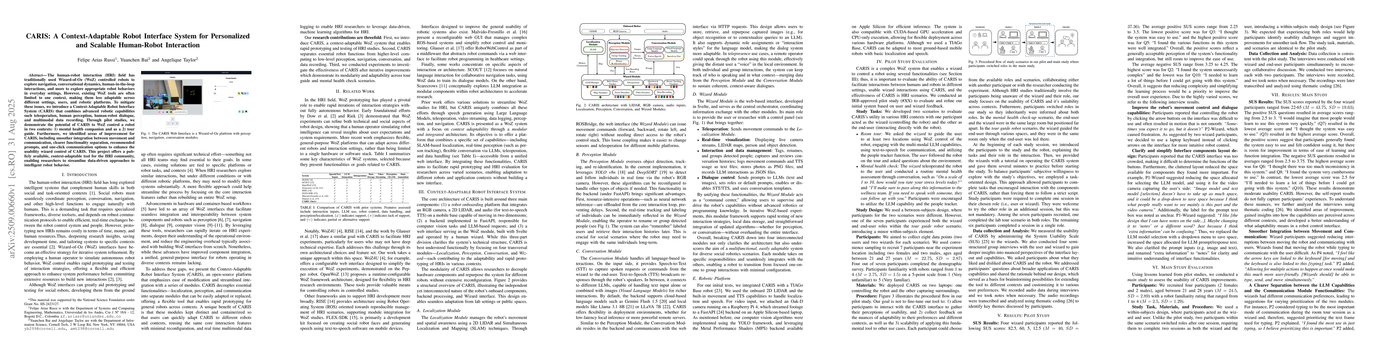 The human-robot interaction (HRI) field has traditionally used Wizard-of-Oz (WoZ) controlled robots to explore navigation, conversational dynamics, human-in-the-loop interactions, and more to explore appropriate robot behaviors in everyday settings. However, existing WoZ tools are often limited to one context, making them less adaptable across different settings, users, and robotic platforms. To mitigate these issues, we introduce a Context-Adaptable Robot Interface System (CARIS) that combines advanced robotic capabilities such teleoperation, human perception, human-robot dialogue, and multimodal data recording. Through pilot studies, we demonstrate the potential of CARIS to WoZ control a robot in two contexts: 1) mental health companion and as a 2) tour guide. Furthermore, we identified areas of improvement for CARIS, including smoother integration between movement and communication, clearer functionality separation, recommended prompts, and one-click communication options to enhance the usability wizard control of CARIS. This project offers a publicly available, context-adaptable tool for the HRI community, enabling researchers to streamline data-driven approaches to intelligent robot behavior.