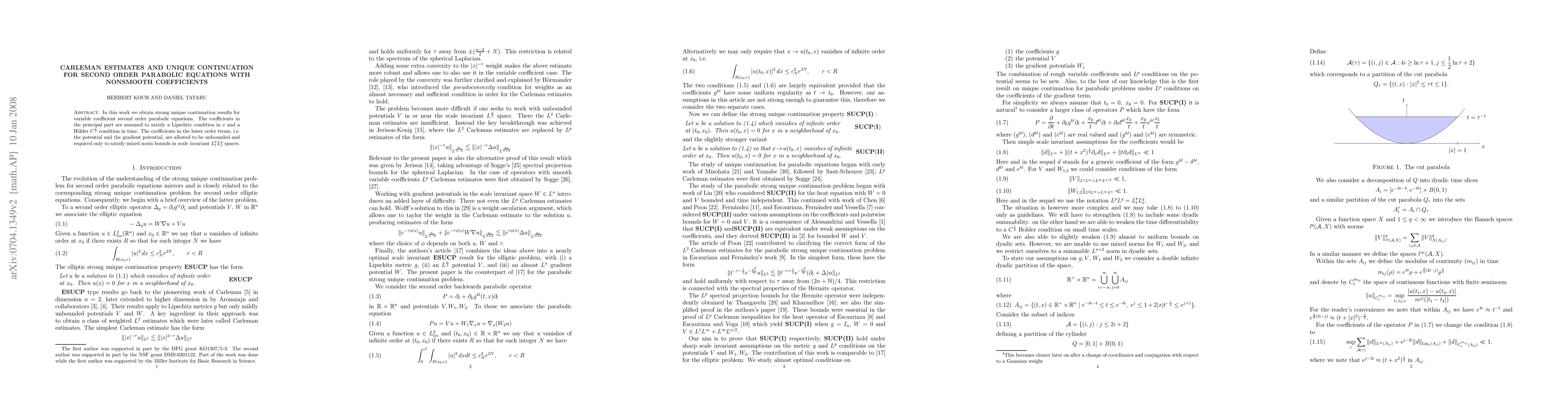 This paper investigates unique continuation for second-order parabolic equations with nonsmooth coefficients, focusing on Carleman estimates to solve the strong unique continuation problem.