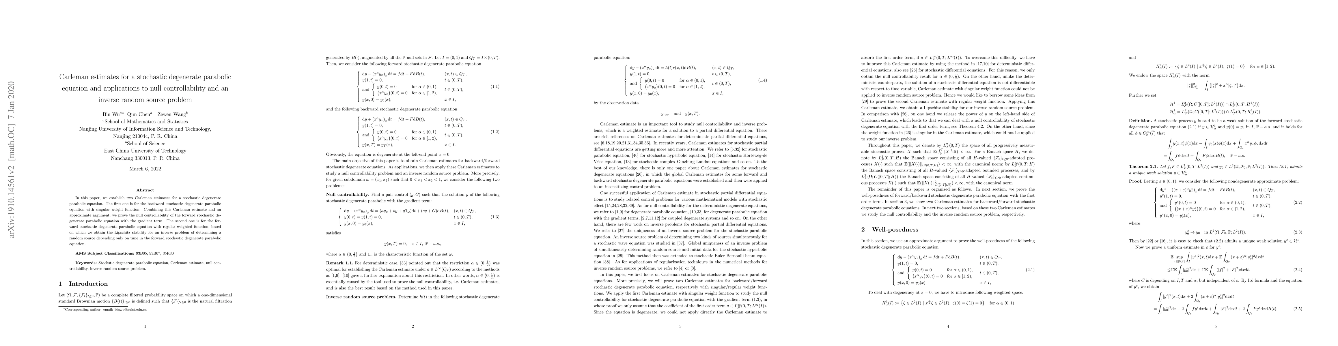 This paper establishes two Carleman estimates for stochastic degenerate parabolic equations, proving null controllability for the forward equation and Lipschitz stability for an inverse problem identifying a time-dependent random source.