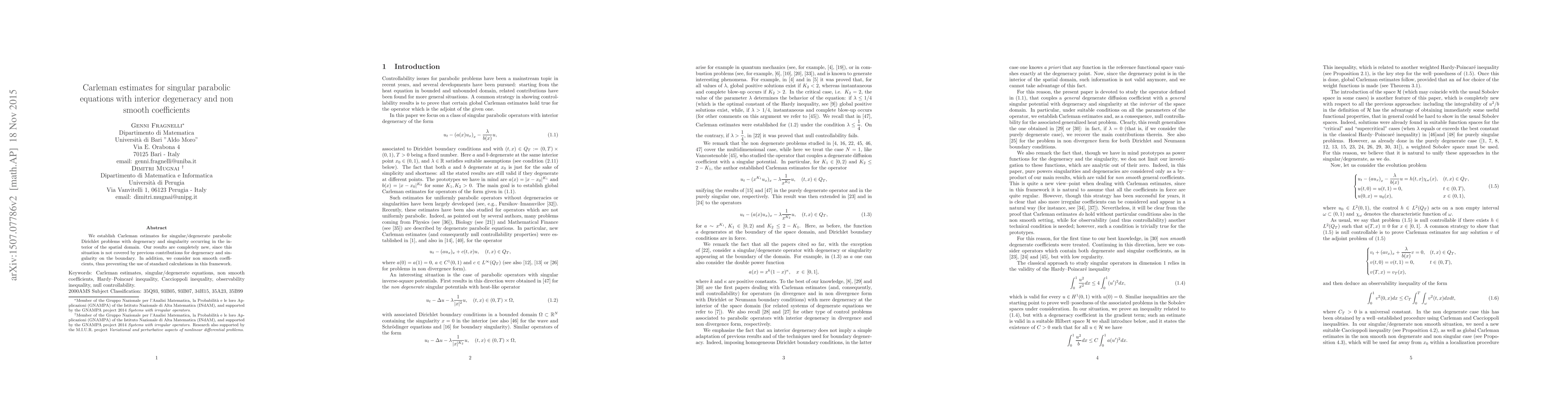 This paper establishes novel Carleman estimates for singular parabolic equations with interior degeneracy and non-smooth coefficients, addressing a scenario not covered by previous boundary-focused studies. The results are significant due to the absence of standard methods in handling non-smooth coefficients.