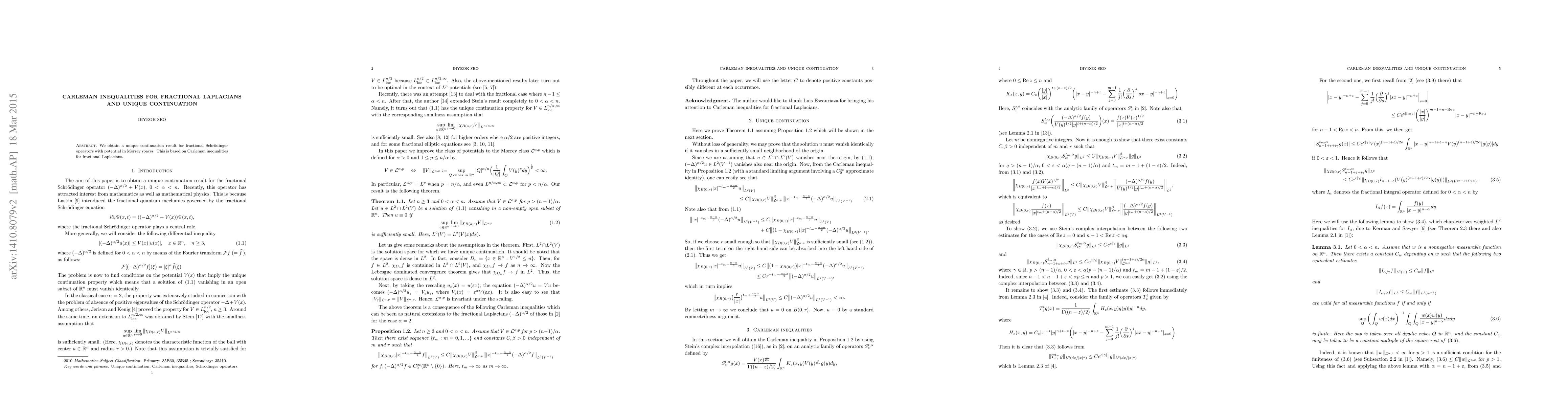 Summary: This paper establishes a unique continuation property for fractional Schrödinger operators using Carleman inequalities for fractional Laplacians, with the potential residing in Morrey spaces. The findings underscore the significance of these inequalities in proving unique continuation.