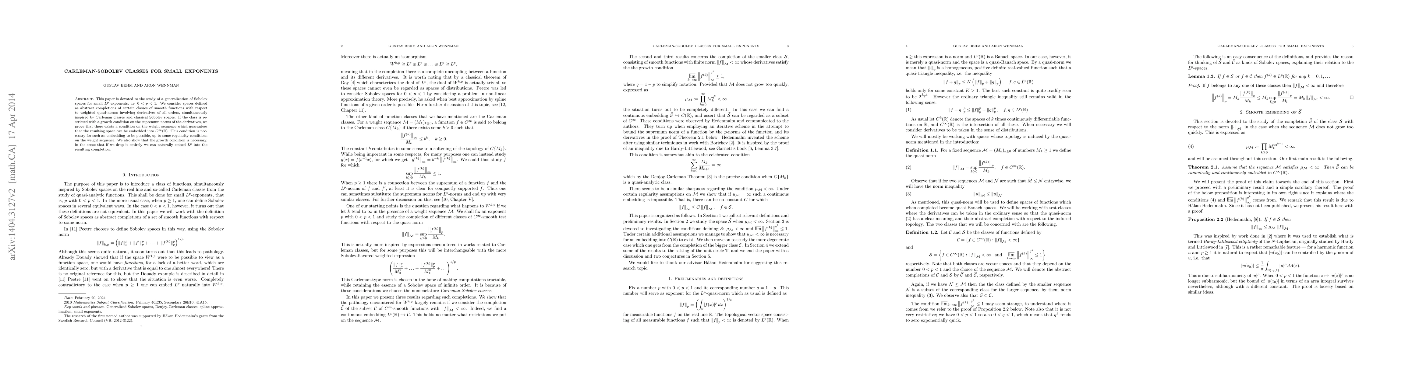 This paper is devoted to the study of a generalization of Sobolev spaces for small $L^{p}$ exponents, i.e. $0
