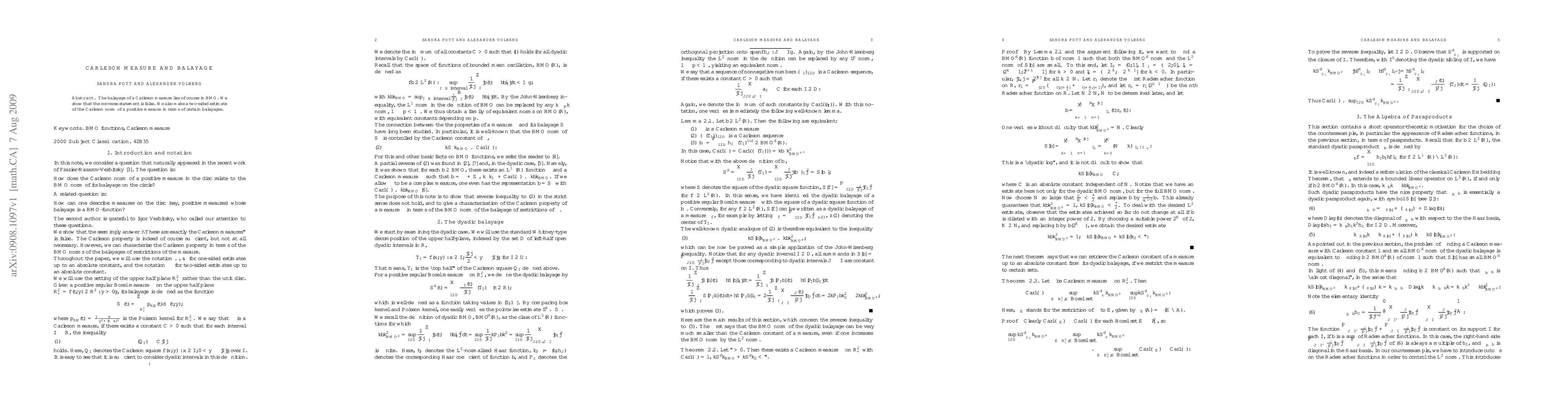 Summary: This paper demonstrates that while the balayage of a Carleson measure belongs to BMO, the converse is not true. It also provides a two-sided estimate relating the Carleson norm of a positive measure to its balayages.