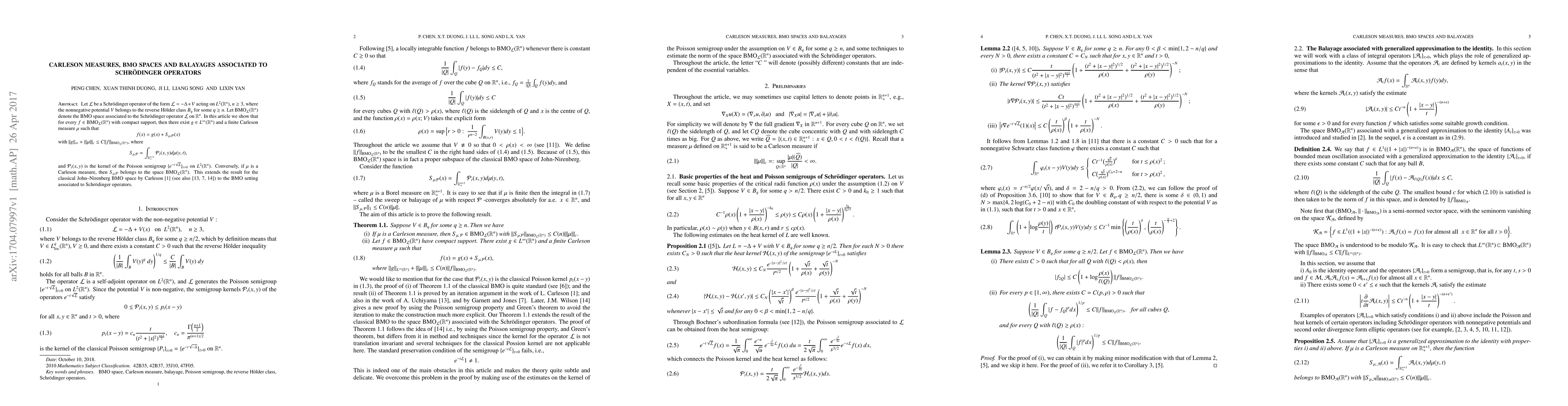 The paper establishes a connection between Schrödinger operators and BMO spaces, showing that every BMO function with compact support can be decomposed into the sum of an L^{ty} function and a Carleson measure.