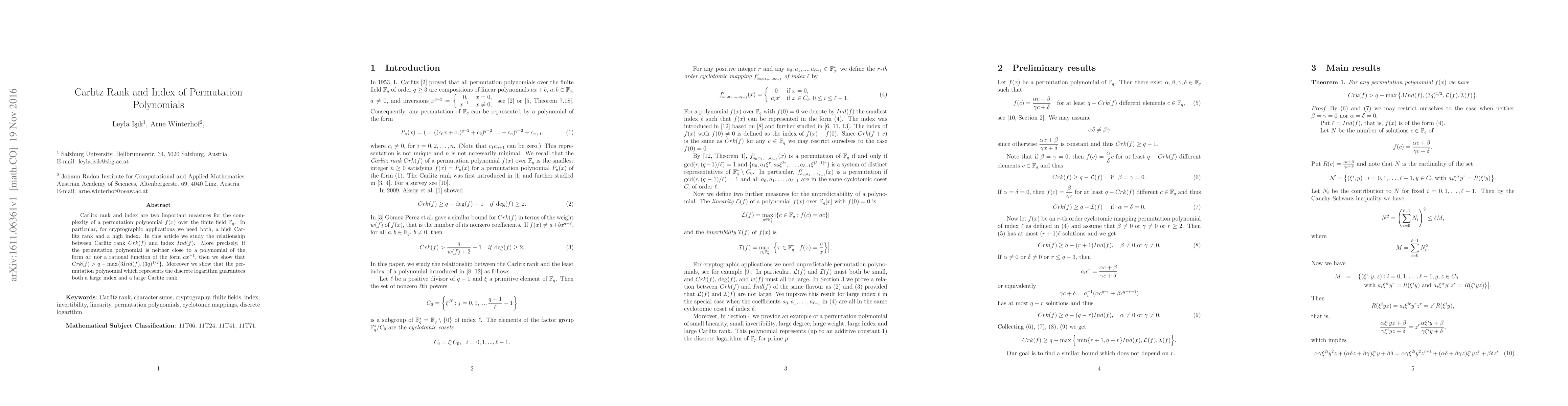 Carlitz rank and index are two important measures for the complexity of a permutation polynomial $f(x)$ over the finite field $\F_q$. In particular, for cryptographic applications we need both, a high Carlitz rank and a high index. In this article we study the relationship between Carlitz rank $Crk(f)$ and index $Ind(f)$. More precisely, if the permutation polynomial is neither close to a polynomial of the form $ax$ nor a rational function of the form $ax^{-1}$, then we show that $Crk(f)>q- \max\{3 Ind(f),(3q)^{1/2}\}$. Moreover we show that the permutation polynomial which represents the discrete logarithm guarantees both a large index and a large Carlitz rank.