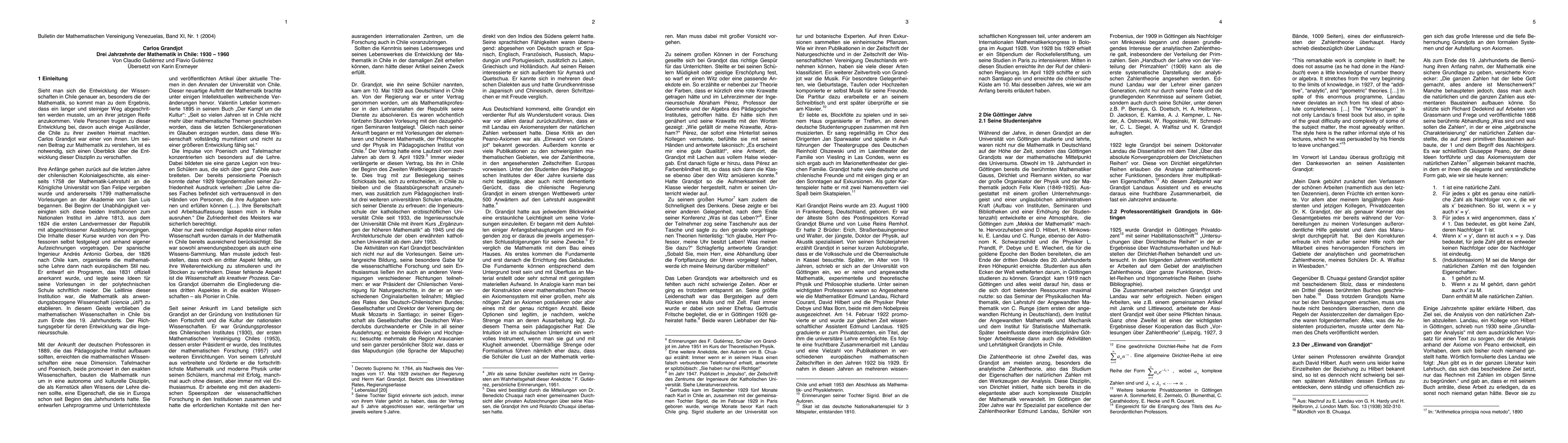 Carlos Grandjot (1900-1979) was a German mathematician, doctorate from G\"ottingen, who moved to Chile in 1929 and developed there his life and career. He was influential in the development of Chilean mathematics during the period 1930 to 1960. This article reports our investigation of his biography and describes the mathematical environment in his new homeland.
