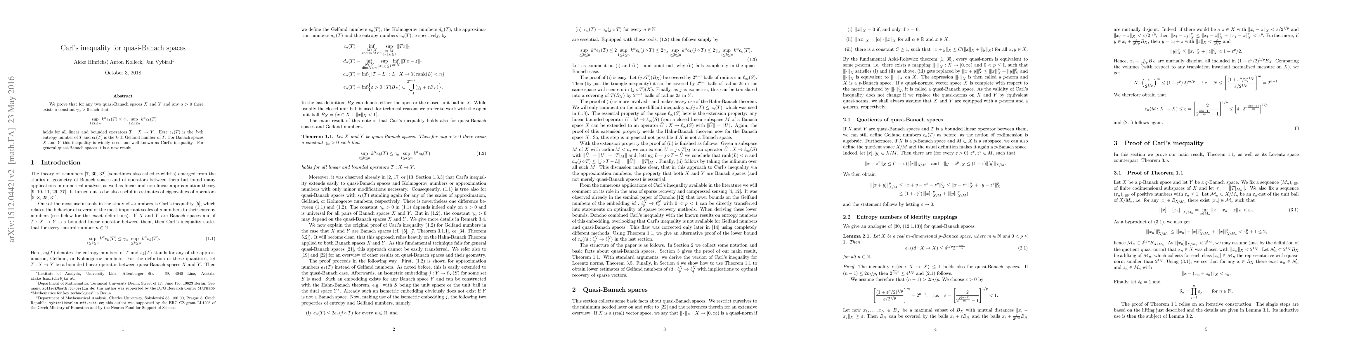 The research proves Carl's inequality for quasi-Banach spaces, extending a known result for Banach spaces.