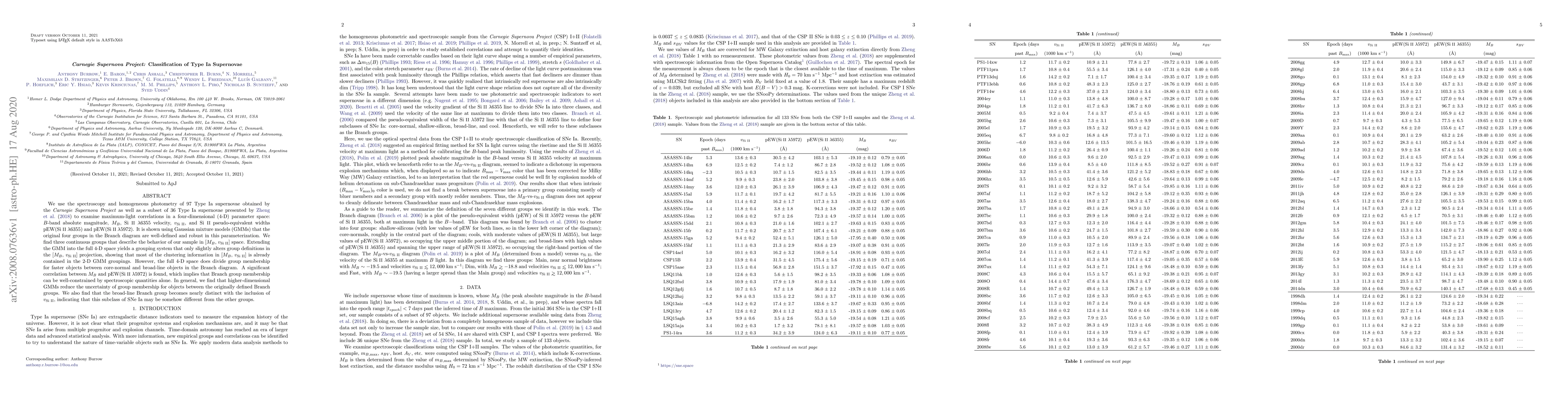 The Carnegie Supernova Project classifies 97 Type Ia supernovae using spectroscopy and photometry, revealing four-dimensional correlations in $M_B$, \vsi, and \ion{Si}{2} pseudo-equivalent widths. Gaussian mixture models confirm the robustness of original Branch groups and identify three continuous groups in [$M_B$, \vsi] space, with higher dimensions slightly refining group definitions and distinguishing between core-normal and broad-line objects.