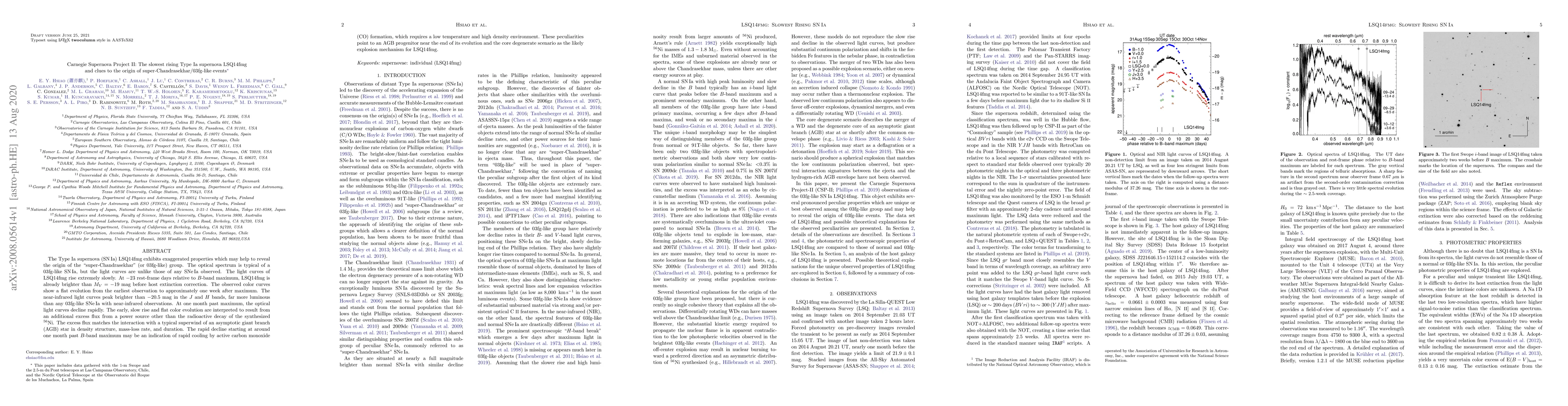 The Type Ia supernova (SN Ia) LSQ14fmg exhibits exaggerated properties which may help to reveal the origin of the "super-Chandrasekhar" (or 03fg-like) group. The optical spectrum is typical of a 03fg-like SN Ia, but the light curves are unlike those of any SNe Ia observed. The light curves of LSQ14fmg rise extremely slowly. At -23 rest-frame days relative to B-band maximum, LSQ14fmg is already brighter than $M_V$=-19 mag before host extinction correction. The observed color curves show a flat evolution from the earliest observation to approximately one week after maximum. The near-infrared light curves peak brighter than -20.5 mag in the J and H bands, far more luminous than any 03fg-like SNe Ia with near-infrared observations. At one month past maximum, the optical light curves decline rapidly. The early, slow rise and flat color evolution are interpreted to result from an additional excess flux from a power source other than the radioactive decay of the synthesized $^{56}Ni$. The excess flux matches the interaction with a typical superwind of an asymptotic giant branch (AGB) star in density structure, mass-loss rate, and duration. The rapid decline starting at around one month past B-band maximum may be an indication of rapid cooling by active carbon monoxide (CO) formation, which requires a low temperature and high density environment. These peculiarities point to an AGB progenitor near the end of its evolution and the core degenerate scenario as the likely explosion mechanism for LSQ14fmg.