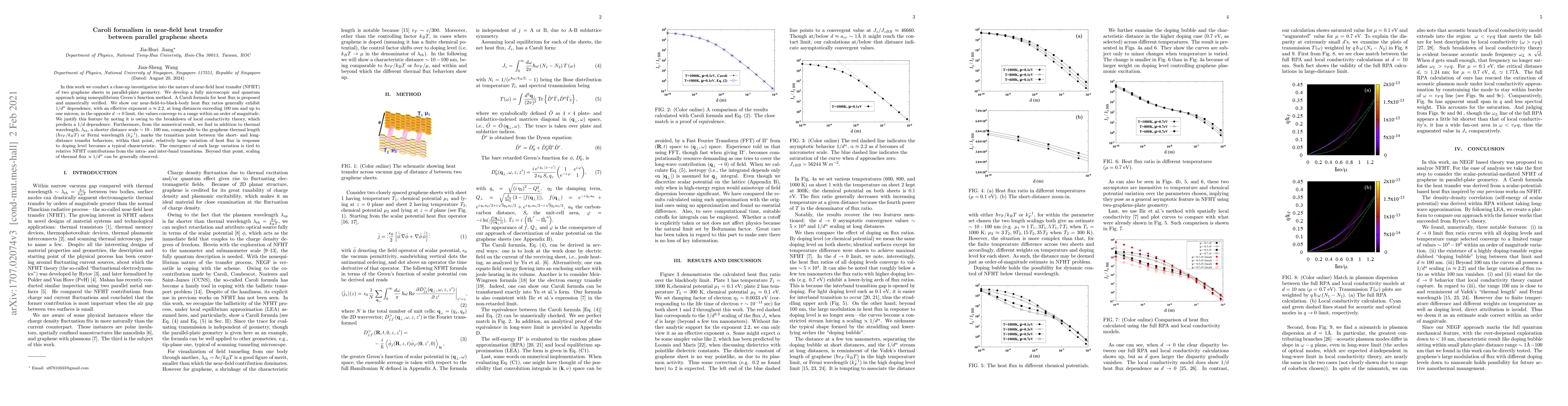 Researchers developed a microscopic approach to study near-field heat transfer between parallel graphene sheets, proposing a Caroli formula that predicts heat flux scales as 1/d^2.4 at long distances, with a transition point around 10-100 nm where thermal behavior changes significantly.