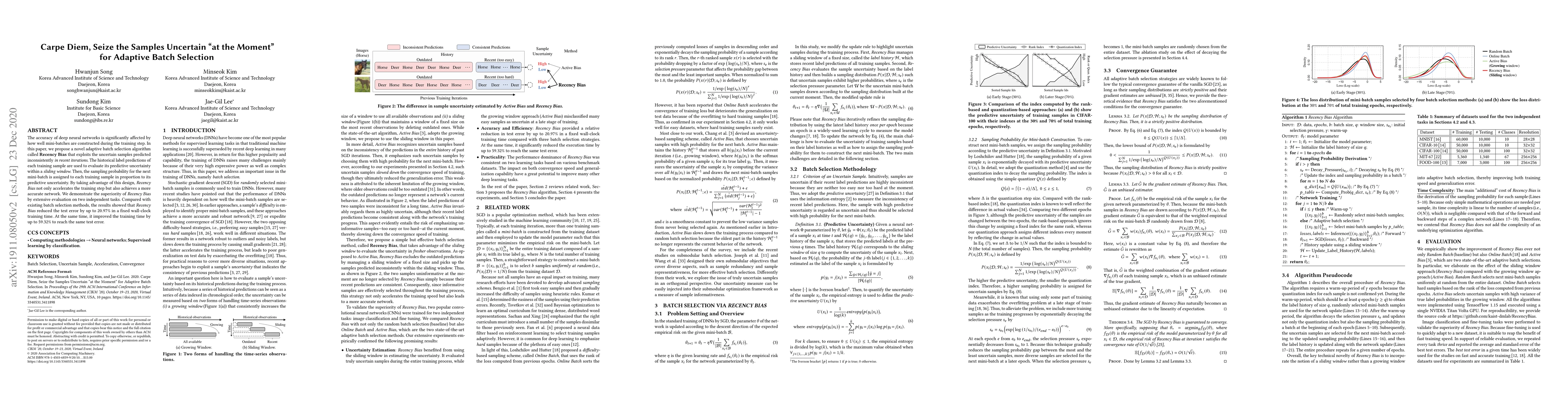 This paper introduces an adaptive batch selection algorithm named Recency Bias that prioritizes uncertain samples in recent iterations for training deep neural networks, achieving up to 20.97% lower test error and a 59.32% faster training time compared to existing methods.