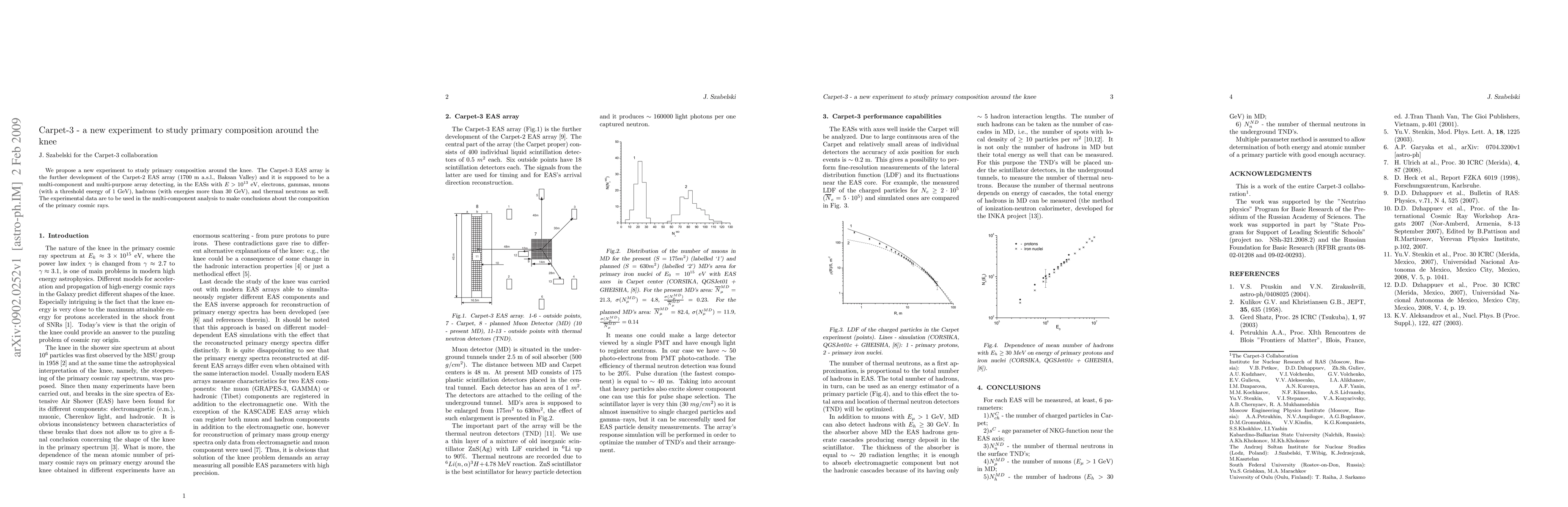 We propose a new experiment to study primary composition around the knee. The Carpet-3 EAS array is the further development of the Carpet-2 EAS array (1700 m a.s.l., Baksan Valley) and it is supposed to be a multi-component and multi-purpose array detecting, in the EASs with $E > 10^{13}$ eV, electrons, gammas, muons (with a threshold energy of 1 GeV), hadrons (with energies more than 30 GeV), and thermal neutrons as well. The experimental data are to be used in the multi-component analysis to make conclusions about the composition of the primary cosmic rays.