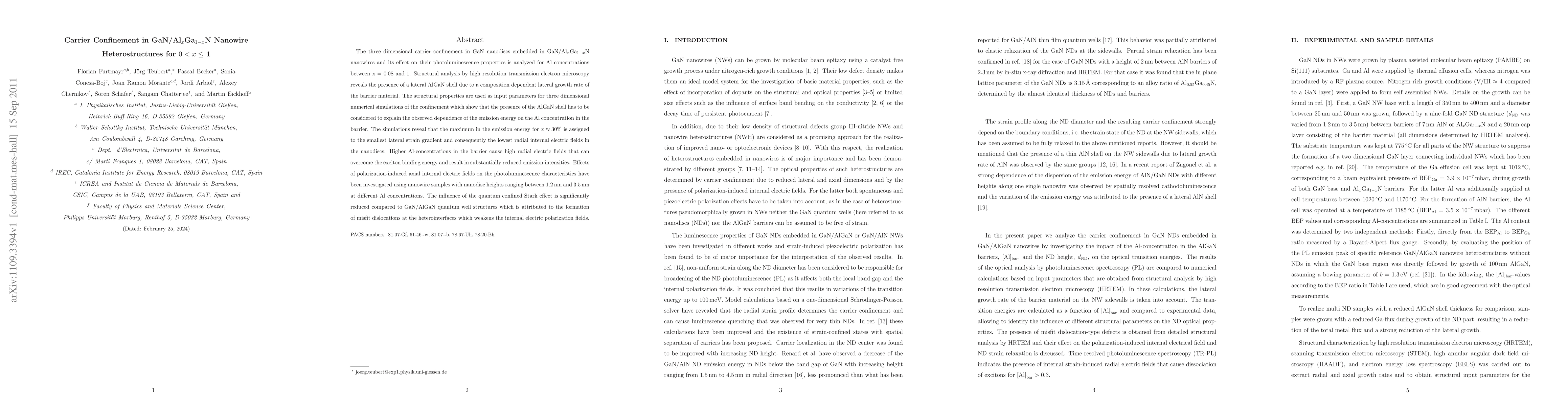 This paper analyzes the three-dimensional carrier confinement in GaN nanodiscs within GaN/AlGaN nanowires, revealing the impact of Al concentration on photoluminescence. High-resolution microscopy shows a lateral AlGaN shell, which is crucial for explaining the emission energy dependence on Al concentration, with maximum emission at ~30% Al due to minimal strain gradients.