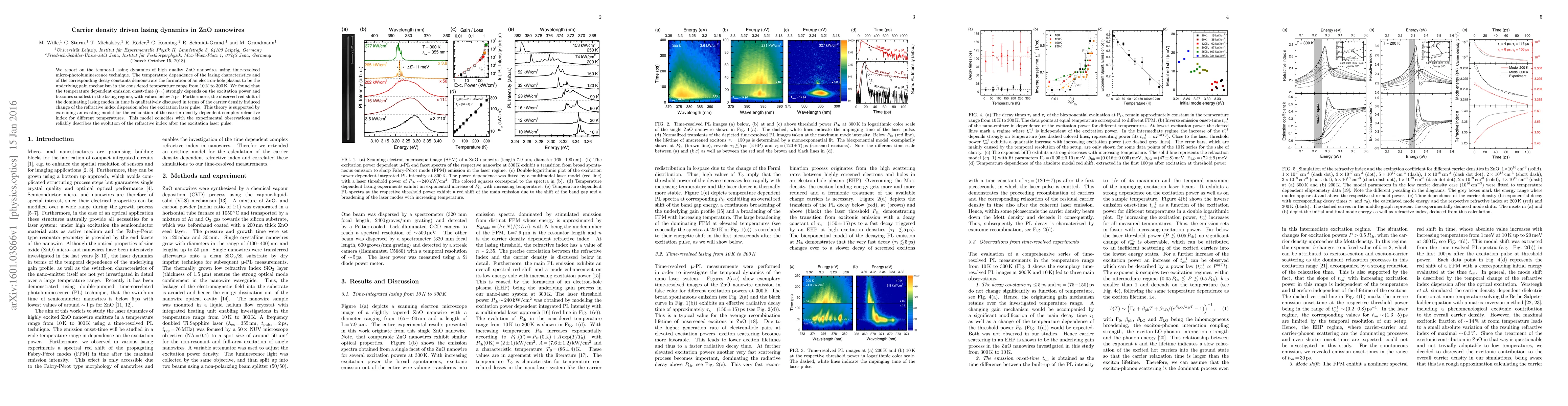 We report on the temporal lasing dynamics of high quality ZnO nanowires using time-resolved micro-photoluminescence technique. The temperature dependence of the lasing characteristics and of the corresponding decay constants demonstrate the formation of an electron-hole plasma to be the underlying gain mechanism in the considered temperature range from 10 K to 300 K. We found that the temperature dependent emission onset-time ($t_{\text{on}}$) strongly depends on the excitation power and becomes smallest in the lasing regime, with values below 5 ps. Furthermore, the observed red shift of the dominating lasing modes in time is qualitatively discussed in terms of the carrier density induced change of the refractive index dispersion after the excitation laser pulse. This theory is supported by extending an existing model for the calculation of the carrier density dependent complex refractive index for different temperatures. This model coincides with the experimental observations and reliably describes the evolution of the refractive index after the excitation laser pulse.