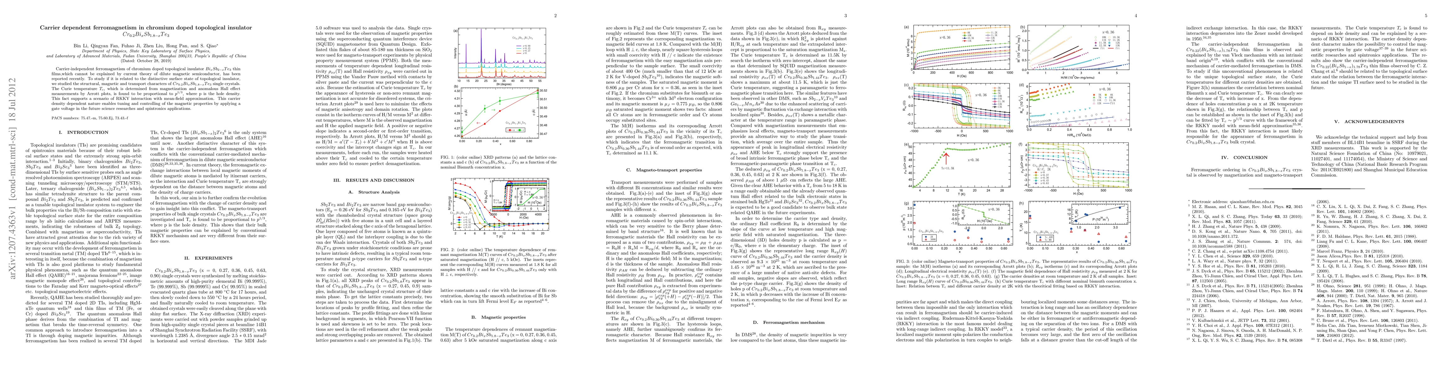 Carrier-independent ferromagnetism of chromium doped topological insulator $Bi_xSb_{2-x}Te_3$ thin films,which cannot be explained by current theory of dilute magnetic semiconductor, has been reported recently. To study if it is related to the distinctive surface state of topological insulator, we studied the structural, magnetic and transport characters of $Cr_{0.2}Bi_xSb_{1.8-x}Te_3$ single crystals. The Curie temperature $T_c$, which is determined from magnetization and anomalous Hall effect measurements by Arrott plots, is found to be proportional to $p^{1/3}$, where p is the hole density. This fact supports a scenario of RKKY interaction with mean-field approximation. This carrier density dependent nature enables tuning and controlling of the magnetic properties by applying a gate voltage in the future science researches and spintronics applications.