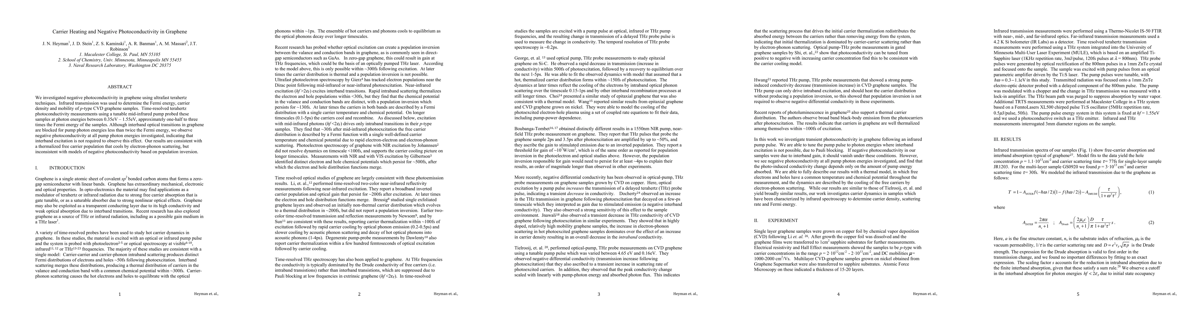 This paper investigates negative photoconductivity in graphene using ultrafast terahertz techniques, finding that it occurs without interband excitation and is instead due to a thermalized carrier population cooling via electron-phonon scattering. The study uses time-resolved terahertz measurements and infrared transmission to analyze p-type CVD graphene samples.