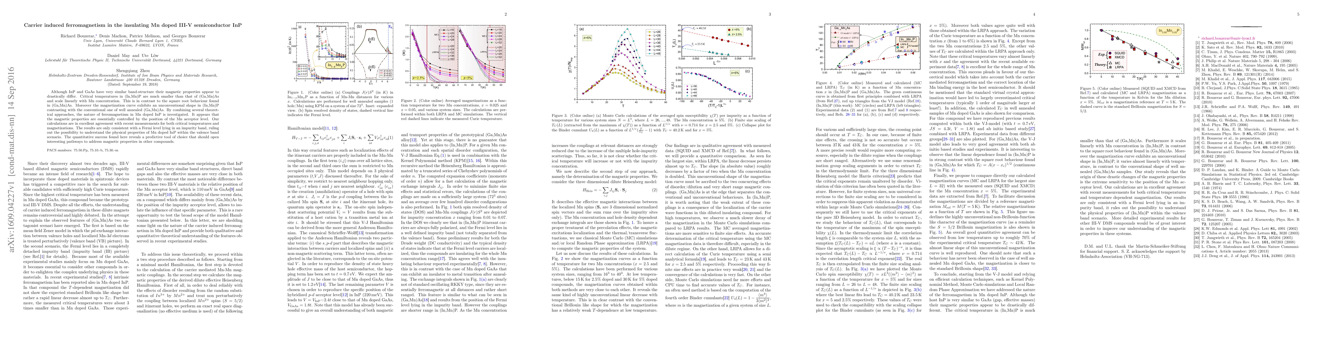 This paper investigates the carrier-induced ferromagnetism in Mn-doped InP, revealing a linear scaling of critical temperatures with Mn concentration and an unconventional magnetization curve. Theoretical analysis suggests that the magnetic properties are governed by the Mn acceptor level's position, with the Fermi level residing in an impurity band, providing a predictive tool for understanding magnetic behavior in similar compounds.