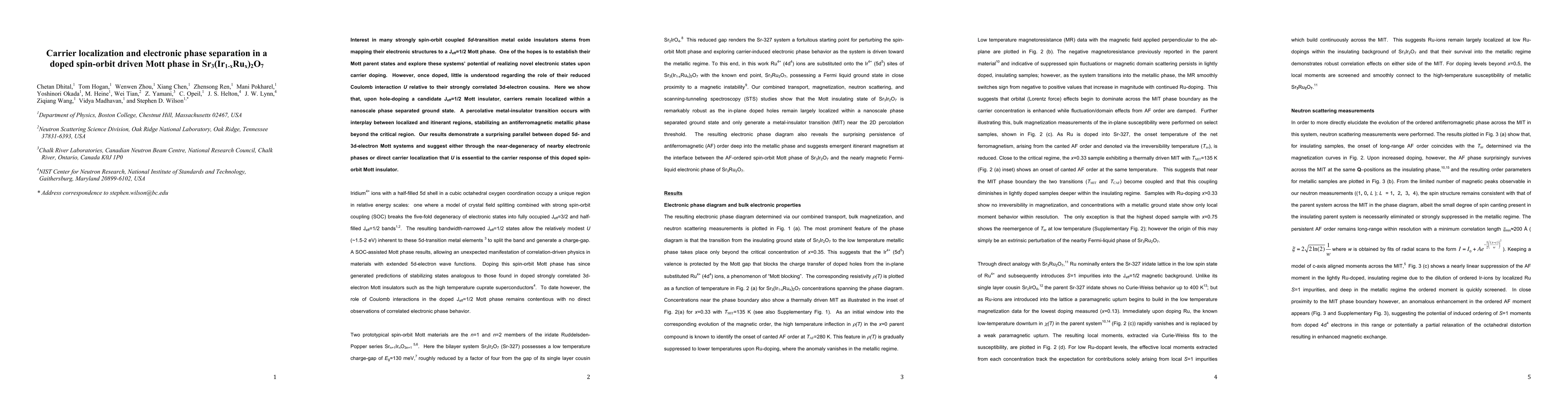 This paper explores the carrier localization and phase separation in doped spin-orbit driven Mott insulators, specifically Sr3(Ir1-xRux)2O7, revealing that doped carriers remain localized in a nanoscale phase-separated state, leading to a percolative metal-insulator transition and an antiferromagnetic metallic phase. The findings suggest that reduced Coulomb interaction U plays a crucial role in the electronic behavior of doped 5d-electron Mott insulators, akin to 3d-electron systems.