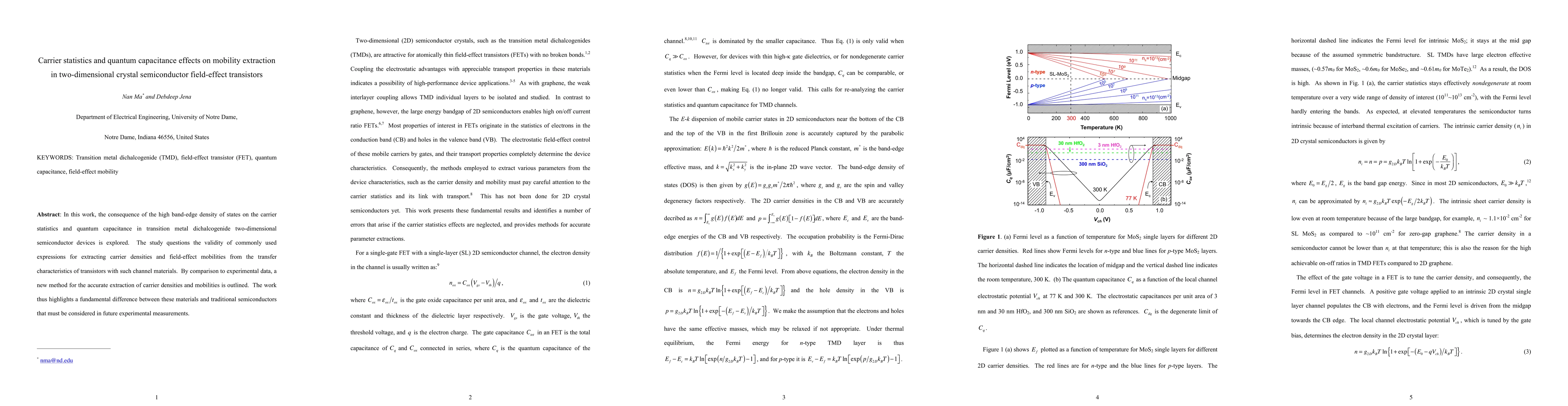 In this work, the consequence of the high band-edge density of states on the carrier statistics and quantum capacitance in transition metal dichalcogenide two-dimensional semiconductor devices is explored. The study questions the validity of commonly used expressions for extracting carrier densities and field-effect mobilities from the transfer characteristics of transistors with such channel materials. By comparison to experimental data, a new method for the accurate extraction of carrier densities and mobilities is outlined. The work thus highlights a fundamental difference between these materials and traditional semiconductors that must be considered in future experimental measurements.