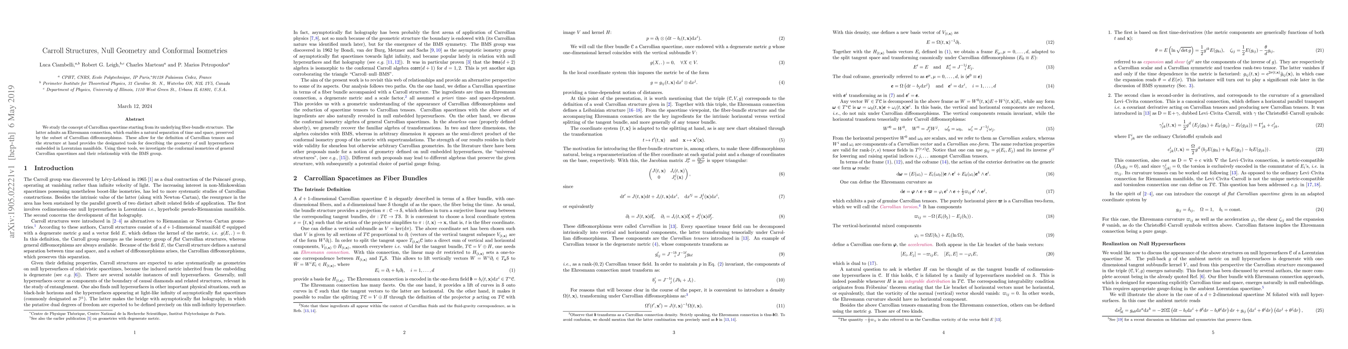 This paper explores Carrollian spacetime through its fiber-bundle structure and associated Ehresmann connection, defining Carrollian tensors and describing null hypersurfaces. It investigates conformal isometries in Carrollian spacetimes and their connection to the BMS group.