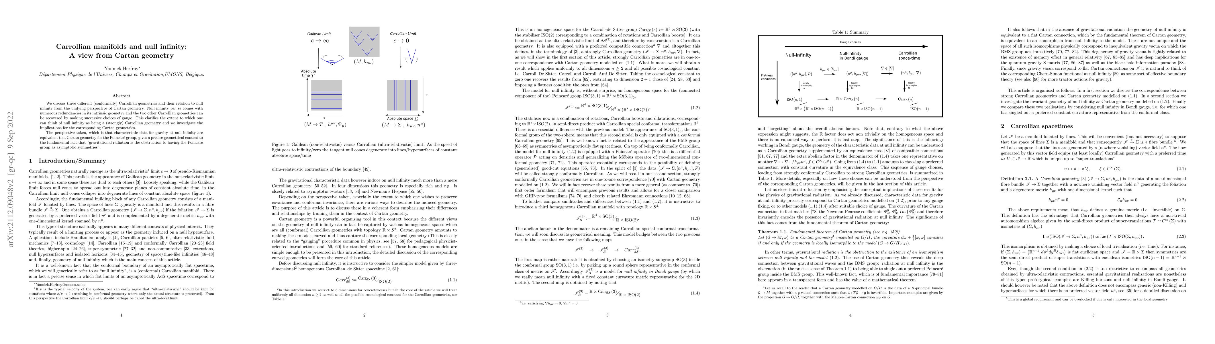 This paper explores three (conformally) Carrollian geometries and their connection to null infinity through Cartan geometry, revealing how null infinity's intrinsic geometry can be reduced by gauge choices, thus clarifying its role as a Carrollian geometry. It also highlights the geometrical implications for corresponding Cartan geometries and emphasizes the equivalence of characteristic data for gravity at null infinity to a Cartan geometry for the Poincaré group.