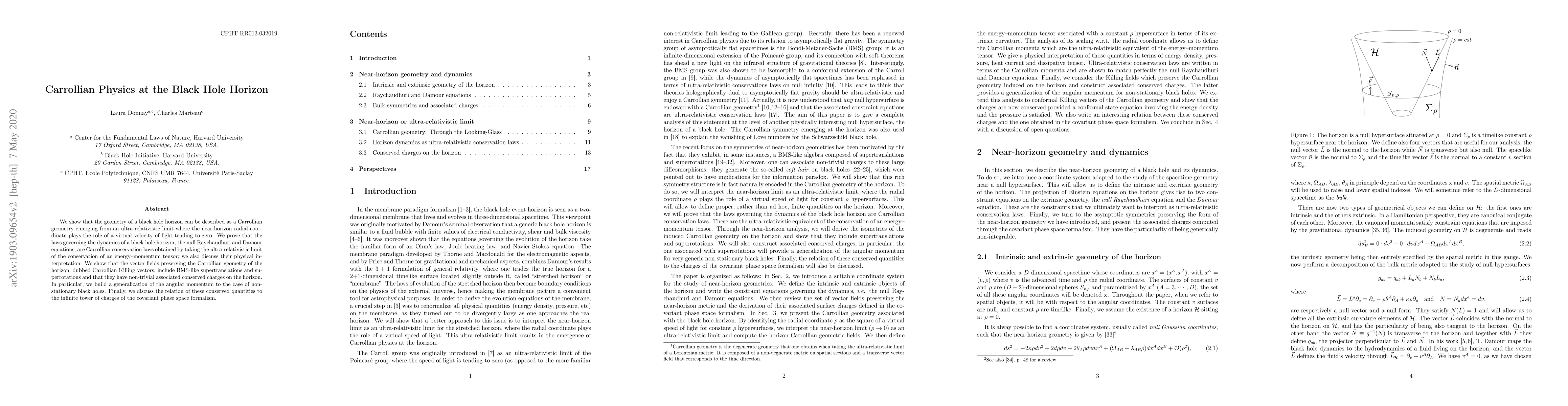 This paper demonstrates that black hole horizons exhibit a Carrollian geometry from an ultra-relativistic limit, where the near-horizon radial coordinate behaves like a velocity approaching zero. It shows that the dynamics of the horizon follow Carrollian conservation laws derived from the ultra-relativistic limit of energy-momentum tensor conservation, and discusses the associated conserved charges and their physical implications.