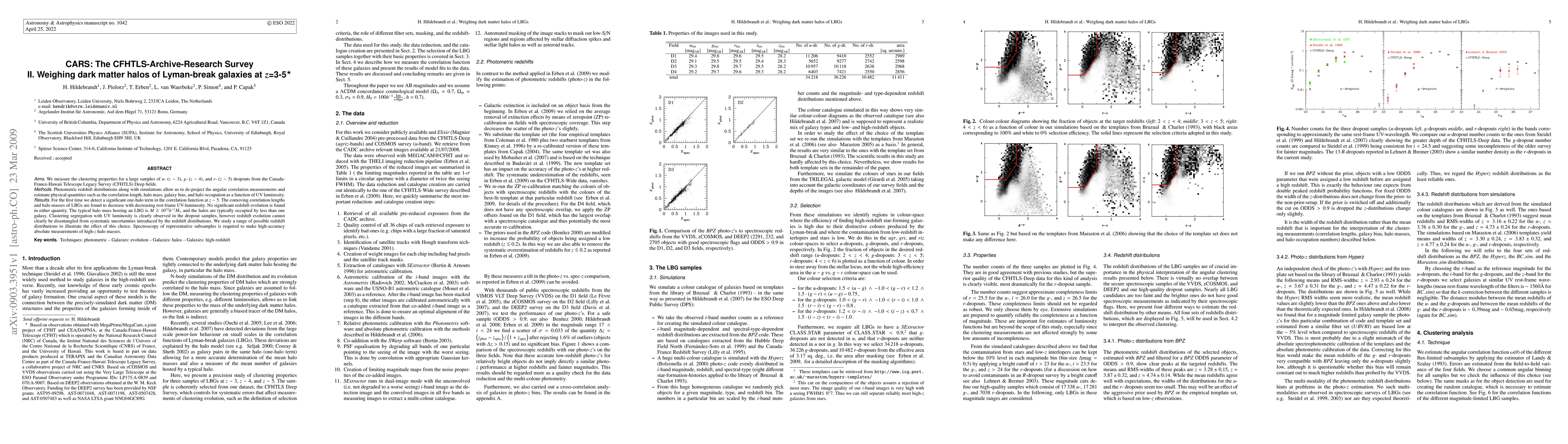 Aims: We measure the clustering properties for a large samples of u- (z~3), g- (z~4), and r- (z~5) dropouts from the Canada-France-Hawaii Telescope Legacy Survey (CFHTLS) Deep fields. Methods: Photometric redshift distributions along with simulations allow us to de-project the angular correlation measurements and estimate physical quantities such as the correlation length, halo mass, galaxy bias, and halo occupation as a function of UV luminosity. Results: For the first time we detect a significant one-halo term in the correlation function at z~5. The comoving correlation lengths and halo masses of LBGs are found to decrease with decreasing rest-frame UV-luminosity. No significant redshift evolution is found in either quantity. The typical halo mass hosting an LBG is M>~10^{12}h^{-1}M_\odot and the halos are typically occupied by less than one galaxy. Clustering segregation with UV luminosity is clearly observed in the dropout samples, however redshift evolution cannot clearly be disentangled from systematic uncertainties introduced by the redshift distributions. We study a range of possible redshift distributions to illustrate the effect of this choice. Spectroscopy of representative subsamples is required to make high-accuracy absolute measurements of high-z halo masses.