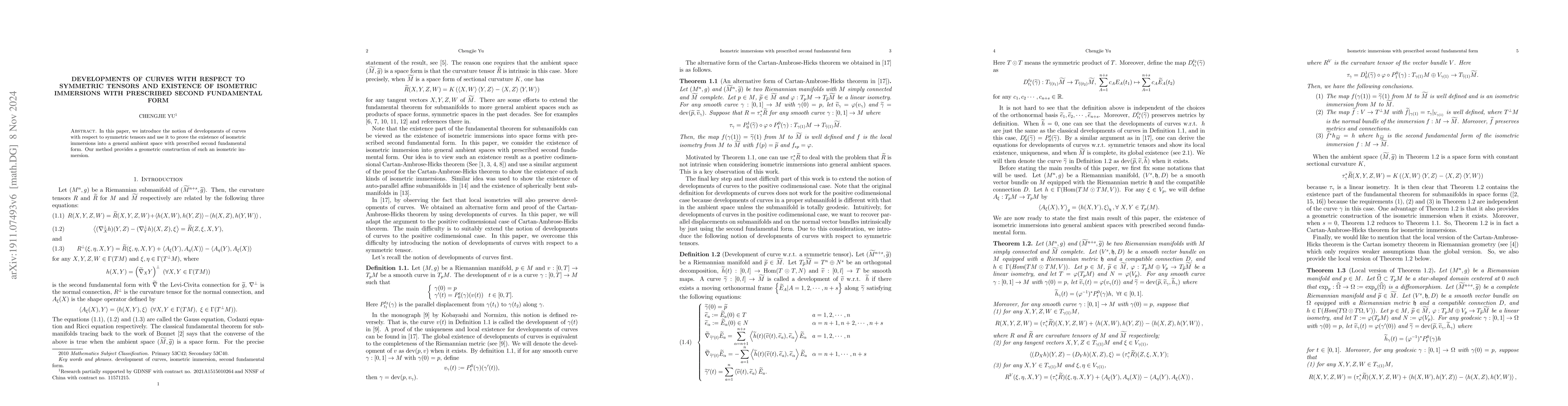 Summary: This paper extends the Cartan-Ambrose-Hicks theorem to isometric immersions, encompassing the fundamental theorem of submanifolds as a specific instance. The generalization provides new insights into the geometric properties of submanifolds.