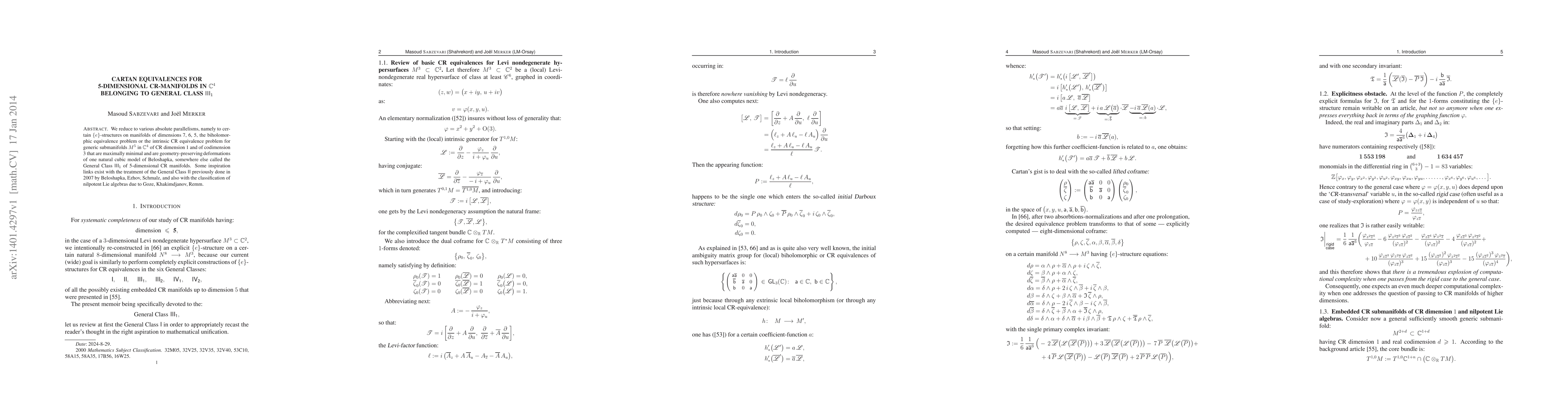 We reduce to various absolute parallelisms, namely to certain {e}-structures on manifolds of dimensions 7, 6, 5, the biholomorphic equivalence problem or the intrinsic CR equivalence problem for generic submanifolds M^5 in C^4 of CR dimension 1 and of codimension 3 that are maximally minimal and are geometry-preserving deformations of one natural cubic model of Beloshapka, somewhere else called the General Class III-1 of 5-dimensional CR manifolds. Some inspiration links exist with the treatment of the General Class II previously done in 2007 by Beloshapka, Ezhov, Schmalz, and also with the classification of nilpotent Lie algebras due to Goze, Khakimdjanov, Remm.