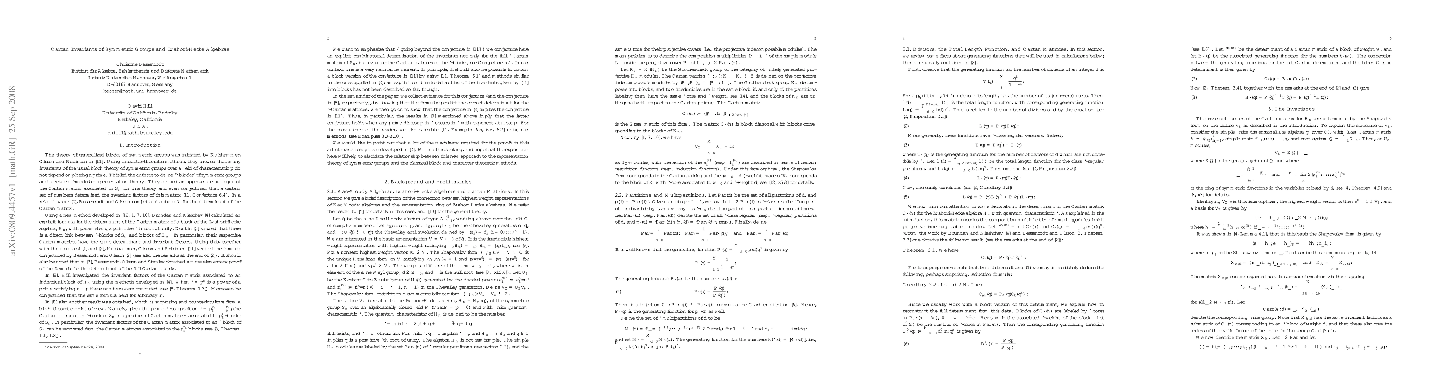 This paper formulates an explicit combinatorial determination of the Cartan invariants for symmetric groups $S_n$ and their associated Iwahori-Hecke algebras, extending previous results to individual blocks. It provides evidence supporting the conjecture that these invariants can be derived from the prime decomposition of the characteristic $\ell$.