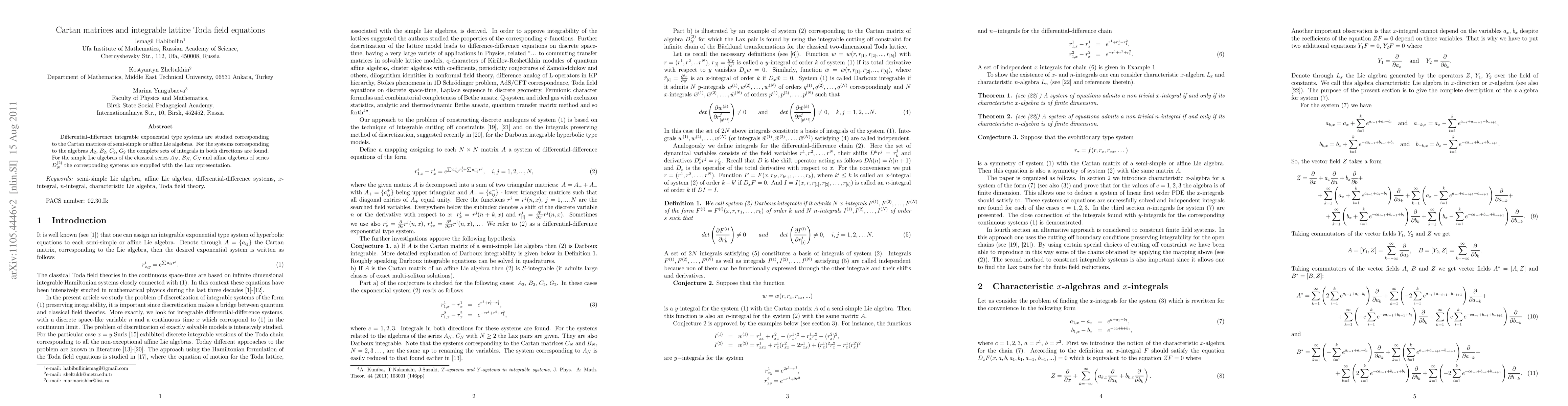 Researchers found complete sets of integrals for differential-difference systems corresponding to Cartan matrices of Lie algebras, providing Lax representations for certain cases.