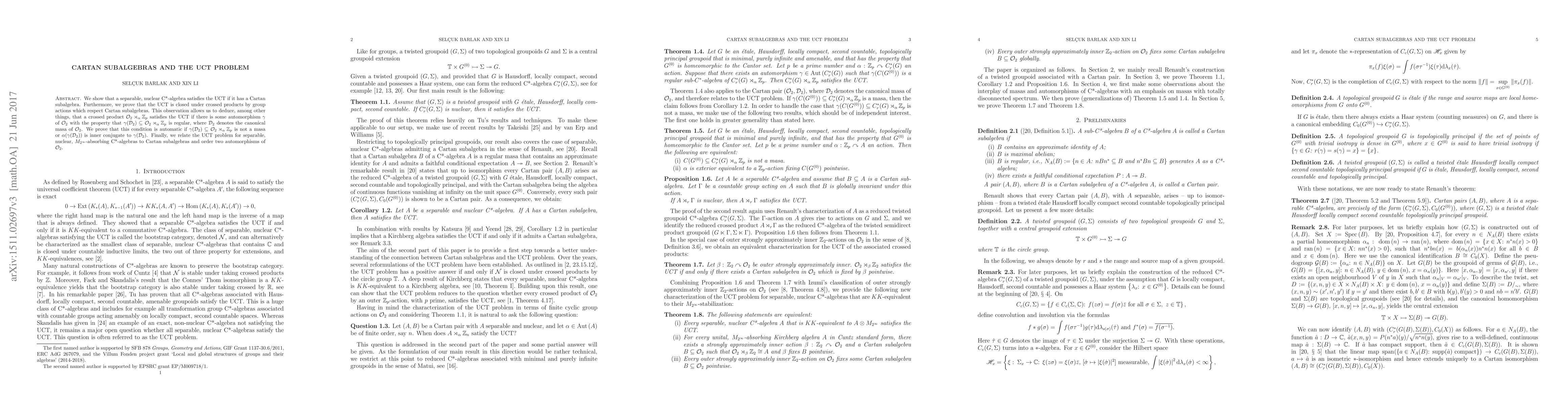 We show that a separable, nuclear C*-algebra satisfies the UCT if it has a Cartan subalgebra. Furthermore, we prove that the UCT is closed under crossed products by group actions which respect Cartan subalgebras. This observation allows us to deduce, among other things, that a crossed product $\mathcal O_2\rtimes_\alpha \mathbb Z_p $ satisfies the UCT if there is some automorphism $\gamma$ of $\mathcal O_2$ with the property that $\gamma(\mathcal D_2)\subseteq \mathcal O_2\rtimes_\alpha \mathbb Z_p$ is regular, where $\mathcal D_2$ denotes the canonical masa of $\mathcal O_2$. We prove that this condition is automatic if $\gamma(\mathcal D_2)\subseteq \mathcal O_2\rtimes_\alpha \mathbb Z_p$ is not a masa or $\alpha(\gamma(\mathcal D_2))$ is inner conjugate to $\gamma(\mathcal D_2)$. Finally, we relate the UCT problem for separable, nuclear, $M_{2^\infty}$-absorbing C*-algebras to Cartan subalgebras and order two automorphisms of $\mathcal O_2$.