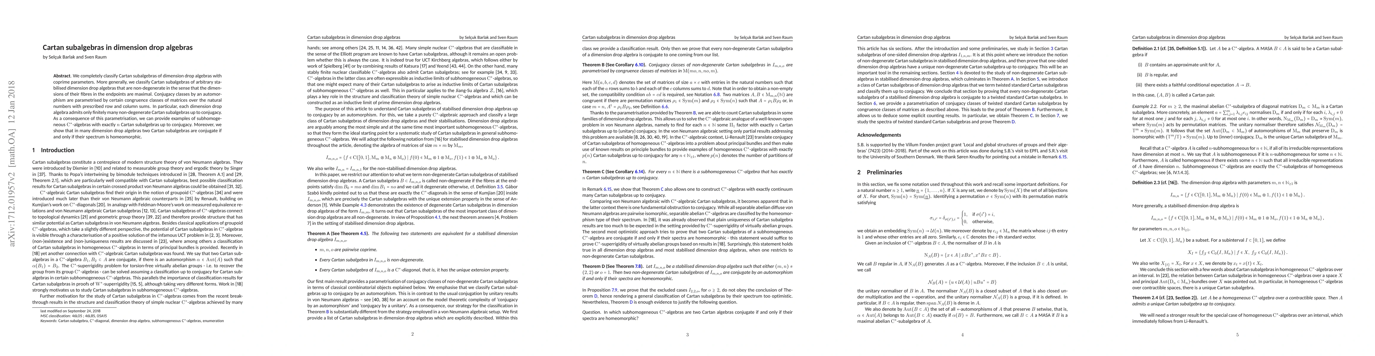 This paper classifies Cartan subalgebras in dimension drop algebras, particularly focusing on those with coprime parameters, and demonstrates that each such algebra has only a finite number of non-degenerate Cartan subalgebras up to conjugacy. It also provides a method to construct subhomogeneous C*-algebras with a specified number of Cartan subalgebras.