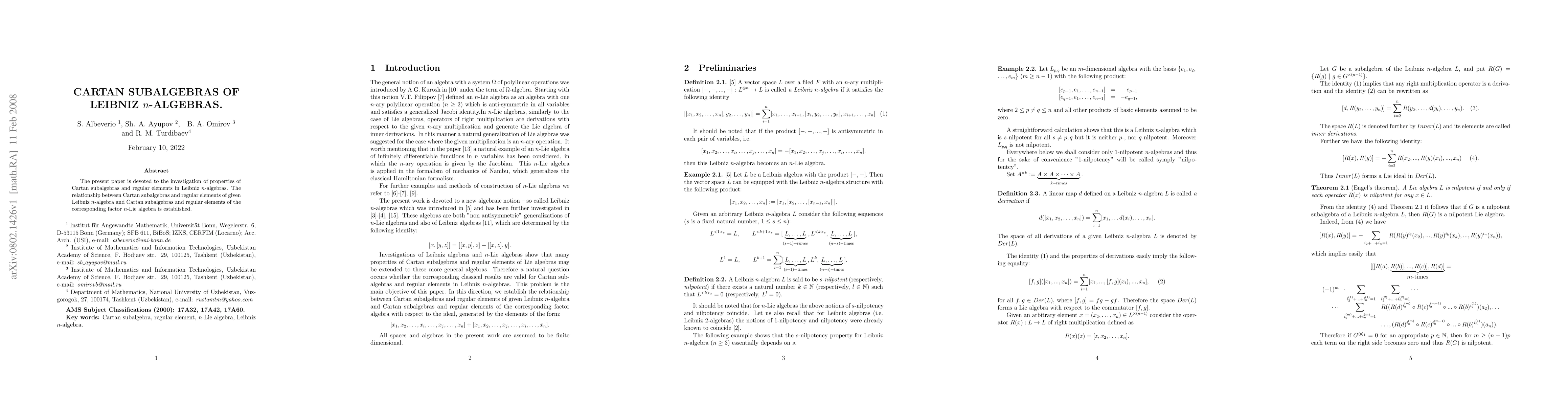 This paper explores the properties of Cartan subalgebras and regular elements in Leibniz $n$-algebras, establishing their relationship with corresponding factor $n$-Lie algebras. It highlights the connections between Cartan subalgebras in Leibniz $n$-algebras and their counterparts in associated $n$-Lie algebras.