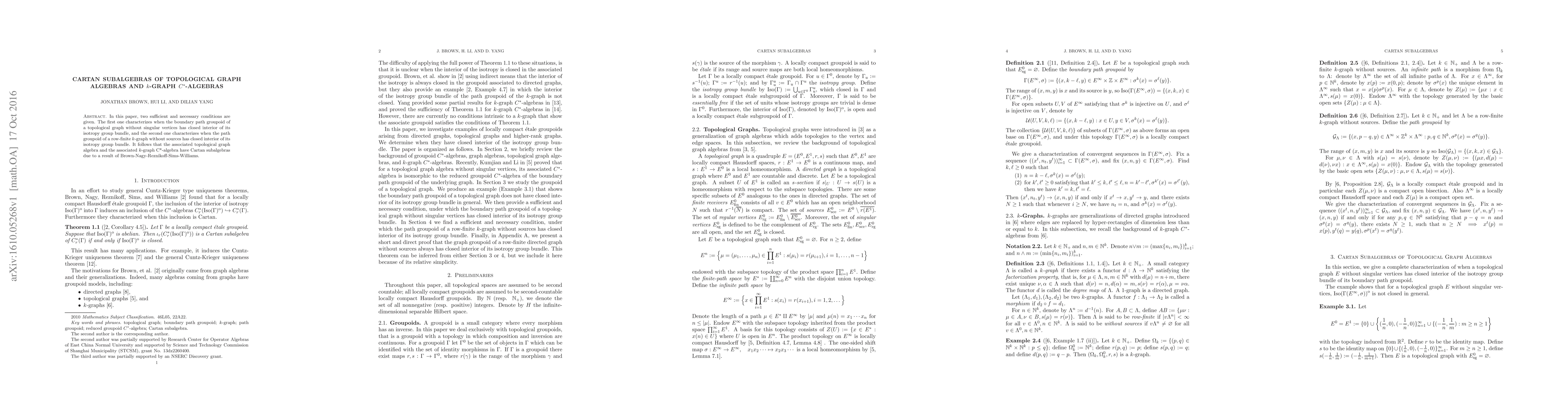 In this paper, two sufficient and necessary conditions are given. The first one characterizes when the boundary path groupoid of a topological graph without singular vertices has closed interior of its isotropy group bundle, and the second one characterizes when the path groupoid of a row-finite k-graph without sources has closed interior of its isotropy group bundle. It follows that the associated topological graph algebra and the associated k-graph C*-algebra have Cartan subalgebras due to a result of Brown-Nagy-Reznikoff-Sims-Williams.