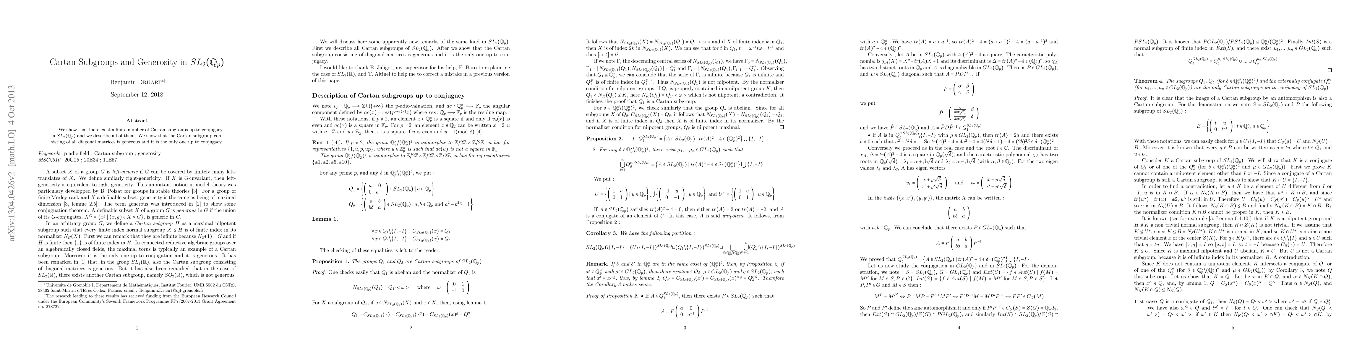 Researchers identified a single type of Cartan subgroup in $SL_2( ext{Q}_p)$ that is generous, consisting of all diagonal matrices, which is unique up to conjugacy.