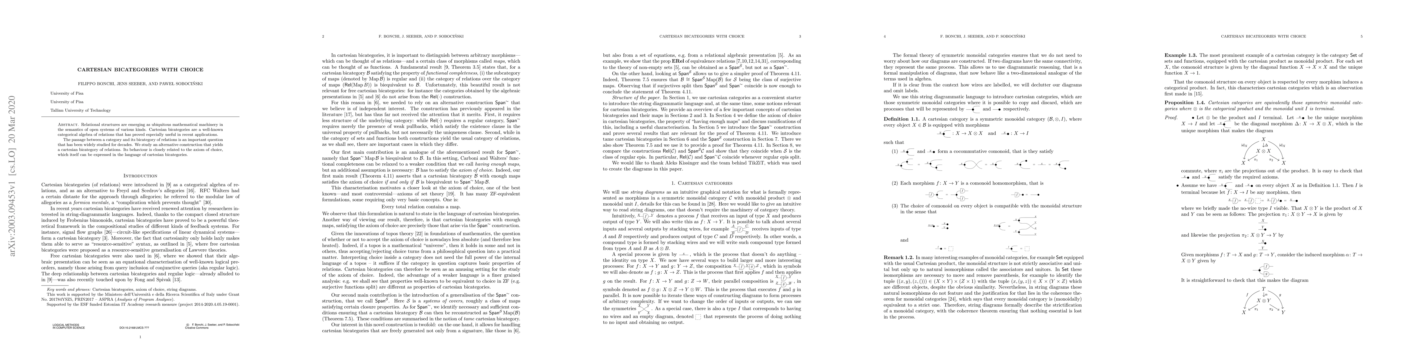 Relational structures are emerging as ubiquitous mathematical machinery in the semantics of open systems of various kinds. Cartesian bicategories are a well-known categorical algebra of relations that has proved especially useful in recent applications. The passage between a category and its bicategory of relations is an important question that has been widely studied for decades. We study an alternative construction that yields a cartesian bicategory of relations. Its behaviour is closely related to the axiom of choice, which itself can be expressed in the language of cartesian bicategories.