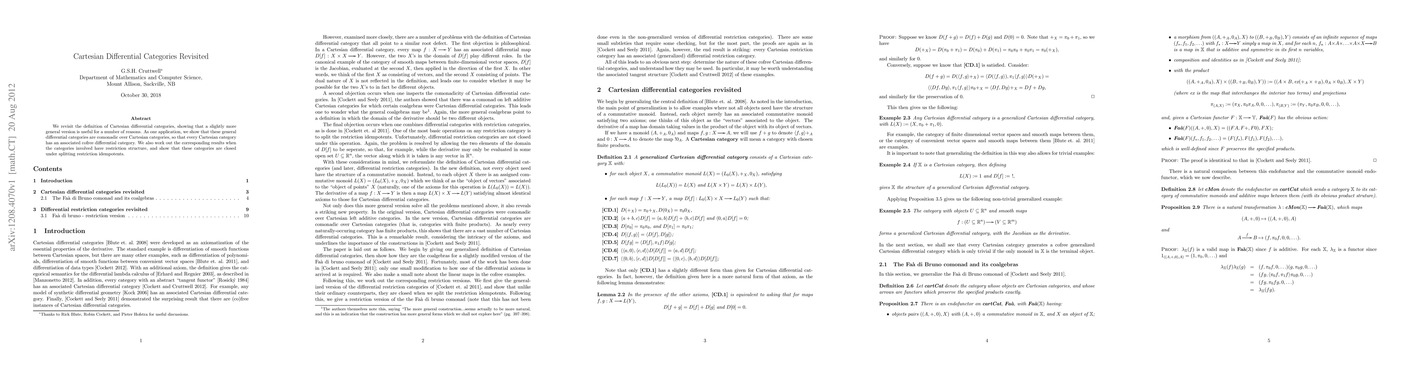 Summary: This paper generalizes the definition of Cartesian differential categories and demonstrates their comonadic nature over Cartesian categories, highlighting the existence of associated cofree differential categories for each Cartesian category. It also extends these results to categories with restriction structures, proving their closure under splitting restriction idempotents.