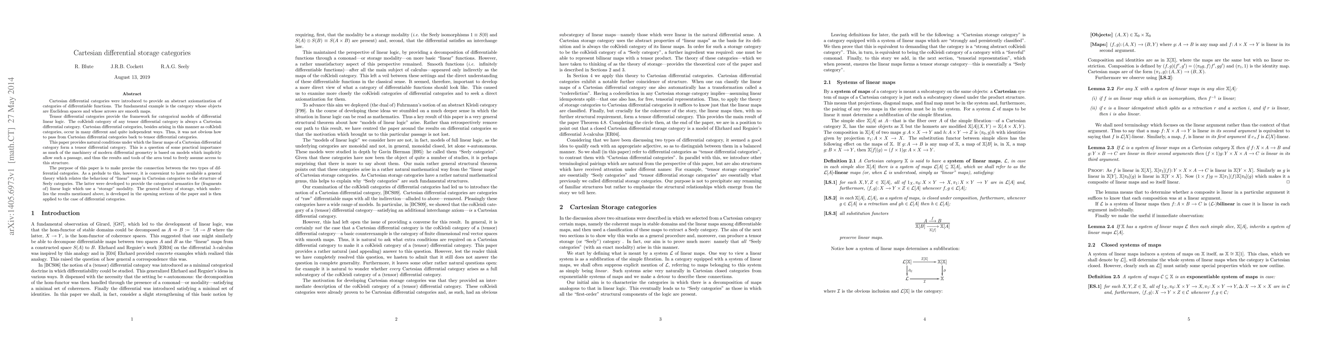 Cartesian differential categories were introduced to provide an abstract axiomatization of categories of differentiable functions. The fundamental example is the category whose objects are Euclidean spaces and whose arrows are smooth maps. Tensor differential categories provide the framework for categorical models of differential linear logic. The coKleisli category of any tensor differential category is always a Cartesian differential category. Cartesian differential categories, besides arising in this manner as coKleisli categories, occur in many different and quite independent ways. Thus, it was not obvious how to pass from Cartesian differential categories back to tensor differential categories. This paper provides natural conditions under which the linear maps of a Cartesian differential category form a tensor differential category. This is a question of some practical importance as much of the machinery of modern differential geometry is based on models which implicitly allow such a passage, and thus the results and tools of the area tend to freely assume access to this structure. The purpose of this paper is to make precise the connection between the two types of differential categories. As a prelude to this, however, it is convenient to have available a general theory which relates the behaviour of "linear" maps in Cartesian categories to the structure of Seely categories. The latter were developed to provide the categorical semantics for (fragments of) linear logic which use a "storage" modality. The general theory of storage, which underlies the results mentioned above, is developed in the opening sections of the paper and is then applied to the case of differential categories.