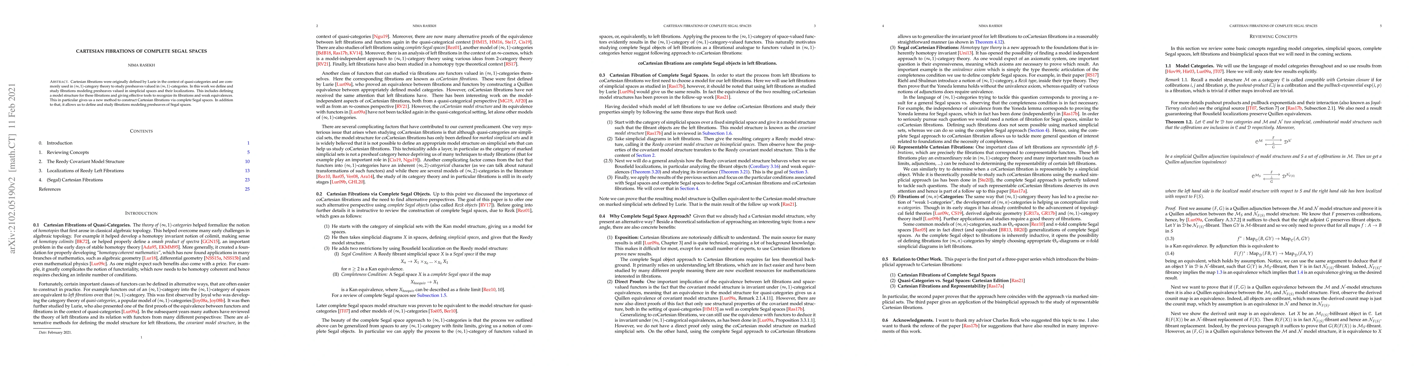 This paper defines and explores Cartesian fibrations of complete Segal spaces, introducing a model structure for fibrations modeling presheaves in simplicial spaces. It provides tools for recognizing fibrations and weak equivalences, and presents a new method to construct such fibrations via complete Segal spaces.