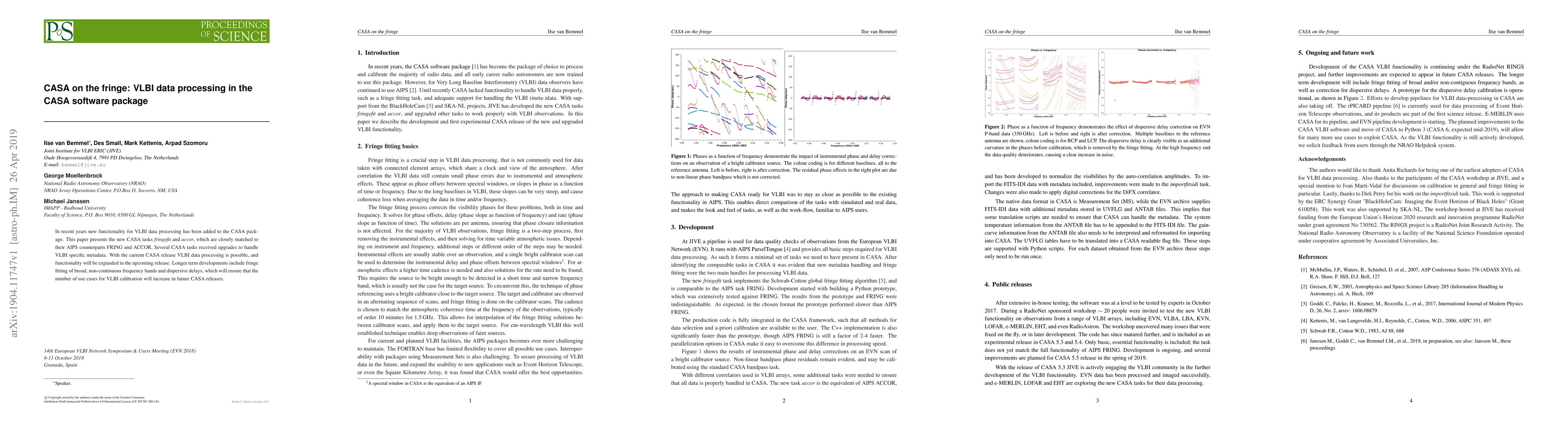 This paper introduces new CASA tasks 'fringefit' and 'accor' for VLBI data processing, enhancing the CASA package with capabilities similar to AIPS' FRING and ACCOR. Upcoming releases promise expanded functionality, including broader frequency band fringe fitting and dispersive delay handling.