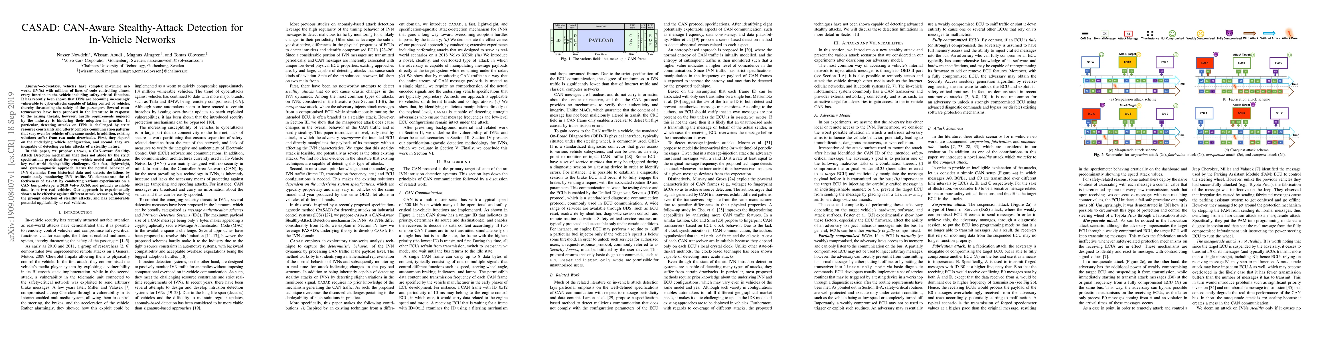 This paper introduces CASAD, a CAN-Aware Stealthy-Attack Detection mechanism designed to identify cyber-attacks in in-vehicle networks without relying on specific vehicle configurations. CASAD learns normal network behavior and detects anomalies through continuous monitoring, demonstrating effectiveness against various attack scenarios in experimental tests.