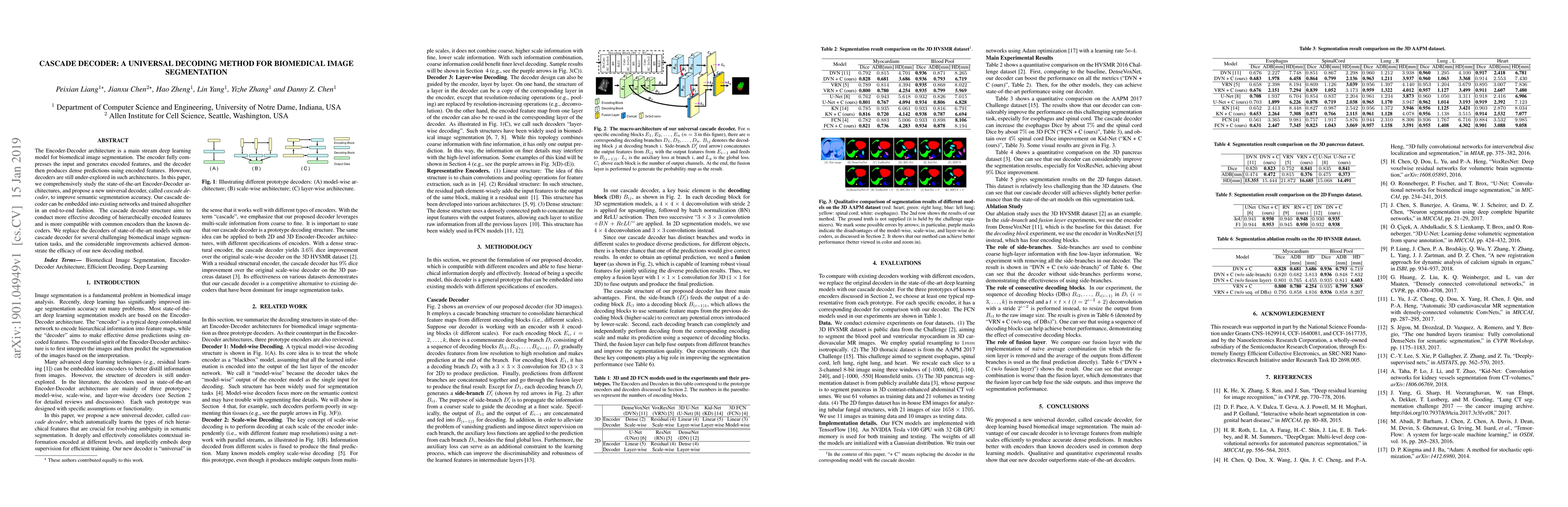 This paper proposes a new universal decoder, the cascade decoder, to enhance the performance of Encoder-Decoder architectures in biomedical image segmentation. The cascade decoder improves semantic segmentation accuracy by more effectively decoding hierarchically encoded features and is shown to outperform existing decoders in several challenging segmentation tasks.