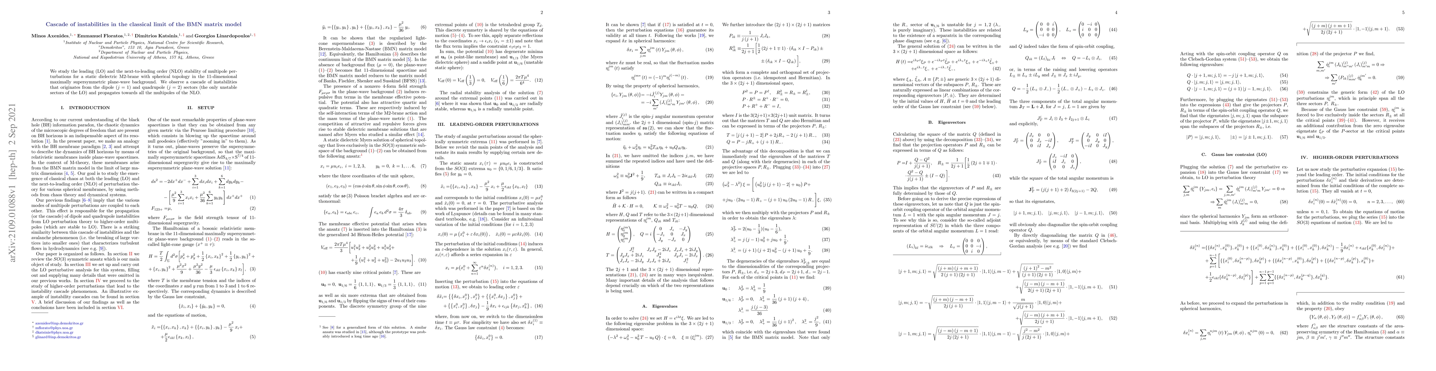 We study the leading (LO) and the next-to-leading order (NLO) stability of multipole perturbations for a static dielectric M2-brane with spherical topology in the 11-dimensional maximally supersymmetric plane-wave background. We observe a cascade of instabilities that originates from the dipole (j=1) and quadrupole (j=2) sectors (the only unstable sectors of the LO) and propagates towards all the multipoles of the NLO.