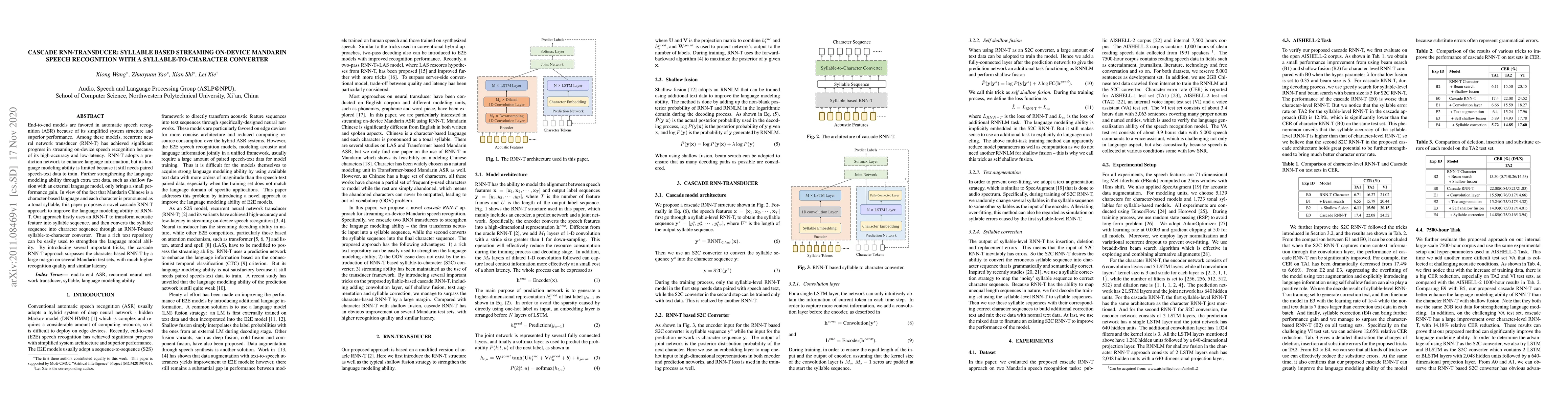 End-to-end models are favored in automatic speech recognition (ASR) because of its simplified system structure and superior performance. Among these models, recurrent neural network transducer (RNN-T) has achieved significant progress in streaming on-device speech recognition because of its high-accuracy and low-latency. RNN-T adopts a prediction network to enhance language information, but its language modeling ability is limited because it still needs paired speech-text data to train. Further strengthening the language modeling ability through extra text data, such as shallow fusion with an external language model, only brings a small performance gain. In view of the fact that Mandarin Chinese is a character-based language and each character is pronounced as a tonal syllable, this paper proposes a novel cascade RNN-T approach to improve the language modeling ability of RNN-T. Our approach firstly uses an RNN-T to transform acoustic feature into syllable sequence, and then converts the syllable sequence into character sequence through an RNN-T-based syllable-to-character converter. Thus a rich text repository can be easily used to strengthen the language model ability. By introducing several important tricks, the cascade RNN-T approach surpasses the character-based RNN-T by a large margin on several Mandarin test sets, with much higher recognition quality and similar latency.