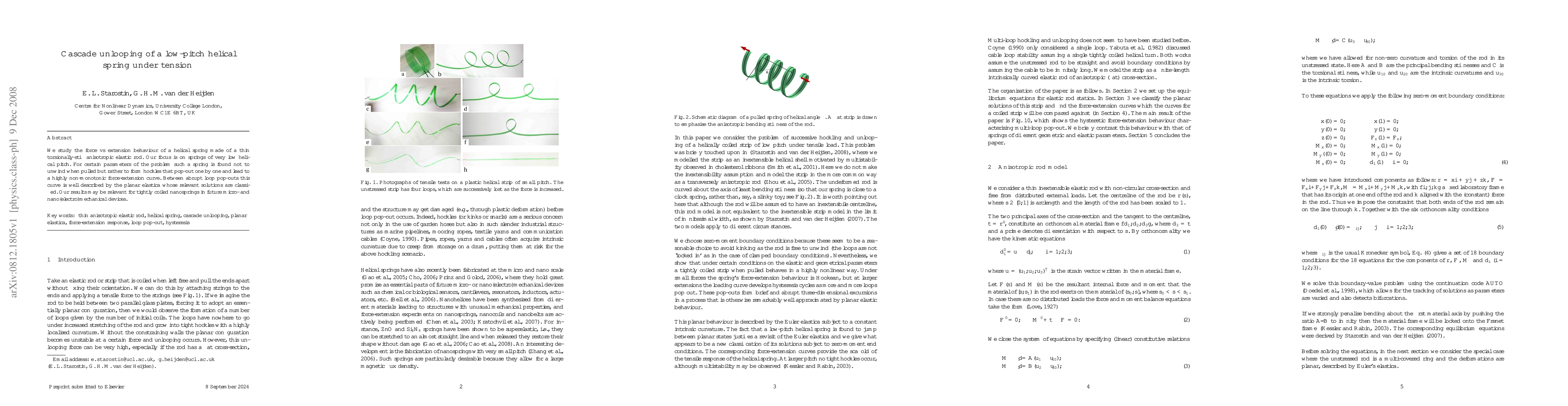 We study the force vs extension behaviour of a helical spring made of a thin torsionally-stiff anisotropic elastic rod. Our focus is on springs of very low helical pitch. For certain parameters of the problem such a spring is found not to unwind when pulled but rather to form hockles that pop-out one by one and lead to a highly non-monotonic force-extension curve. Between abrupt loop pop-outs this curve is well described by the planar elastica whose relevant solutions are classified. Our results may be relevant for tightly coiled nanosprings in future micro- and nano(electro)mechanical devices.
