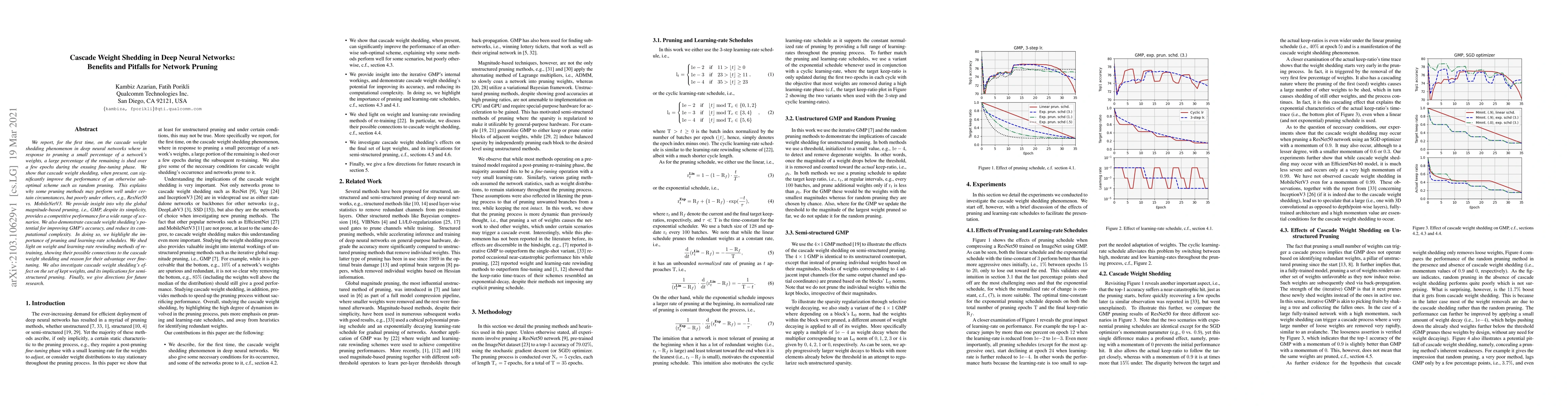This paper explores the phenomenon of cascade weight shedding in deep neural networks, where initial pruning triggers subsequent weight reductions during fine-tuning, potentially improving performance. It also discusses the implications of this effect on various pruning methods and highlights the importance of pruning schedules and re-training techniques.